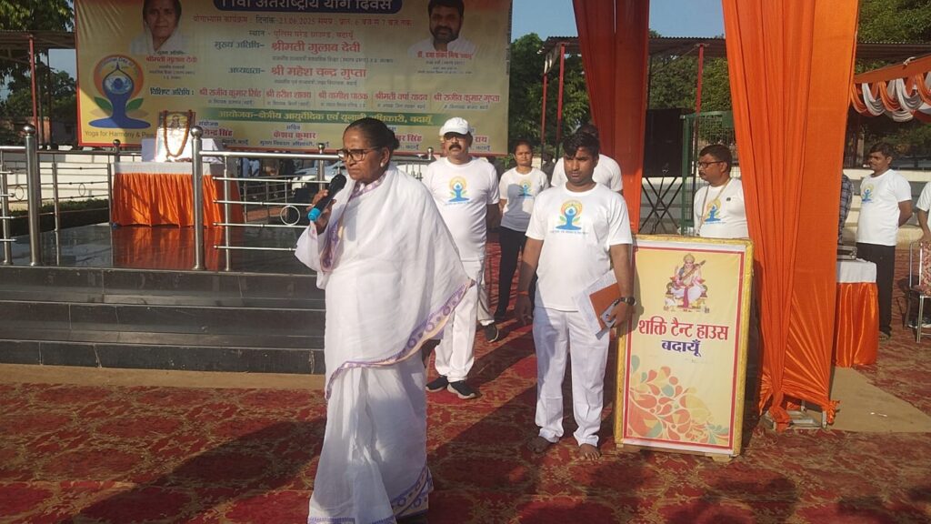 उत्तर प्रदेश सरकार में माध्यमिक शिक्षा राज्य मंत्री स्वतंत्र प्रभार व जनपद की प्रभारी मंत्री गुलाब देवी ने 11वीं अंतर्राष्ट्रीय योग दिवस का शुभारंभ करते हुए कहा कि योग मनुष्य के शारीरिक, मानसिक व बौद्धिक विकास में सहायक हैं। उन्होंने सभी से योग को अपने जीवन का