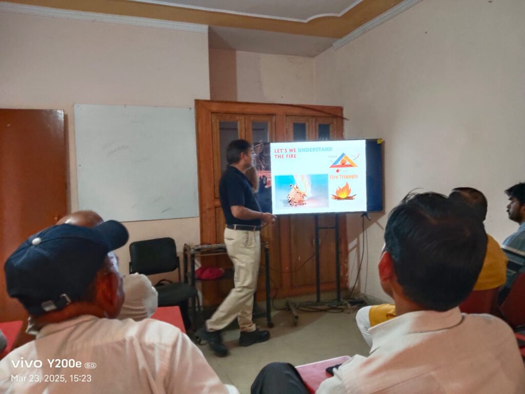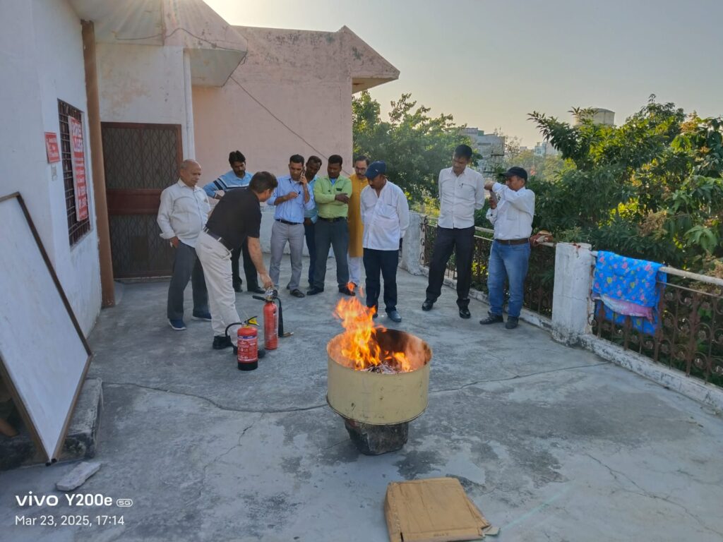 अग्नि सुरक्षा प्रशिक्षक राजेश द्विवेदी ने सभी प्रतिभागियों को अग्नि सुरक्षा के बारे में जानकारी दी, प्रयोग में आने वाले अग्नि सुरक्षा के उपकरणों के बारे में प्रायोगिक प्रशिक्षण दिया साथ ही सभी का आपातकालीन निर्गमन एवं आपातकाल की तैयारी के बारे में भी अभ्यास कराया।