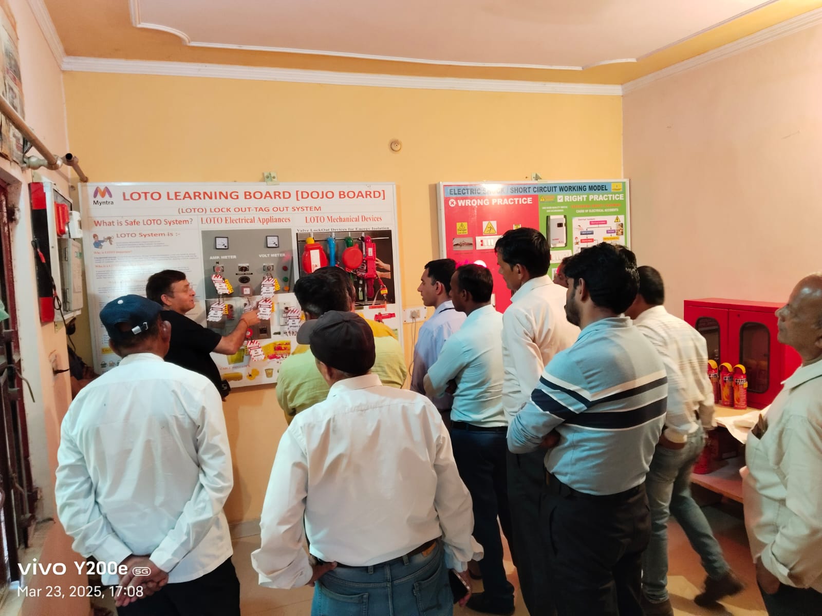 अग्नि सुरक्षा प्रशिक्षक राजेश द्विवेदी ने सभी प्रतिभागियों को अग्नि सुरक्षा के बारे में जानकारी दी, प्रयोग में आने वाले अग्नि सुरक्षा के उपकरणों के बारे में प्रायोगिक प्रशिक्षण दिया साथ ही सभी का आपातकालीन निर्गमन एवं आपातकाल की तैयारी के बारे में भी अभ्यास कराया।