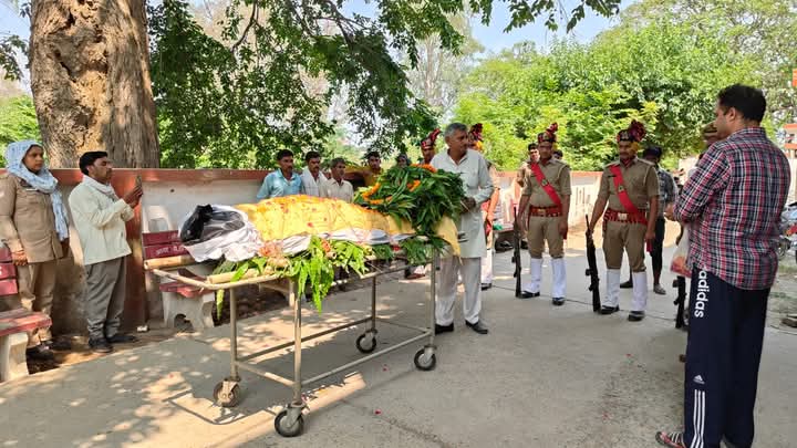 एवं अन्य अधि0/कर्म0गण द्वारा मुख्य आरक्षी पंकज कुमार के पार्थिव शरीर पर श्रद्धासुमन अर्पित कर भावभीनी श्रद्धांजलि देकर शोक संवेदना व्यक्त की गई । शोक सलामी देकर मृतक के अन्तिम संस्कार हेतु उनके गृह जनपद गाजियाबाद मय वाहन सुरक्षा गार्द के रवाना किया गया । शोक सलामी में मृतक के परिवारजन मौजूद रहे।