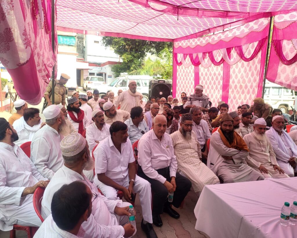 सम्भल । आगागी त्यौहार ईद-उल-अजहा के सम्बन्ध में पीस कमेटी के सदस्यों के साथ पीस कमेटी की बैठक आयोजित की गई है ,जिसमें प्रमुख धर्मगुरुओं एवं संभ्रांत व्यक्तियों के साथ वार्ता की गई तथा आगामी त्यौहारों को शांति व सौहार्दपूर्ण वातावरण में संपन्न किए
