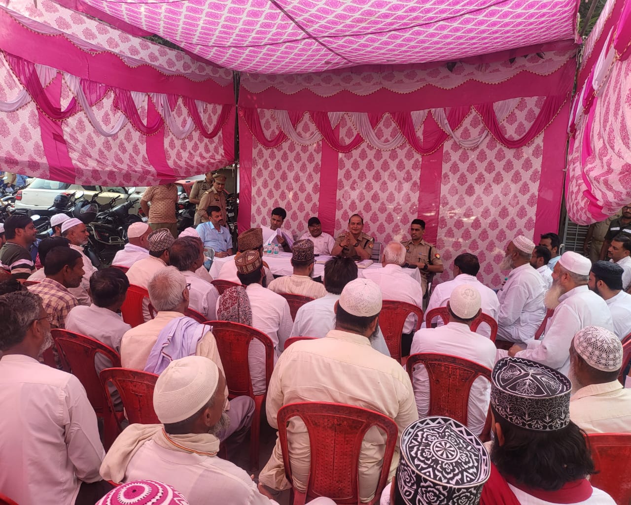 यूपी के जनपद सम्भल में अपर पुलिस अधीक्षक उत्तरी,राजेश कुमार श्रीवास्तव एवं क्षेत्राधिकार आलोक कुमार सम्भल की अध्यक्षता में सम्भल सदर कोतवाली परिषर में आगागी त्यौहार ईद-उल-अजहा के सम्बन्ध में पीस कमेटी के सदस्यों के साथ पीस कमेटी की बैठक आयोजित की गई है ,जिसमें प्रमुख धर्मगुरुओं एवं