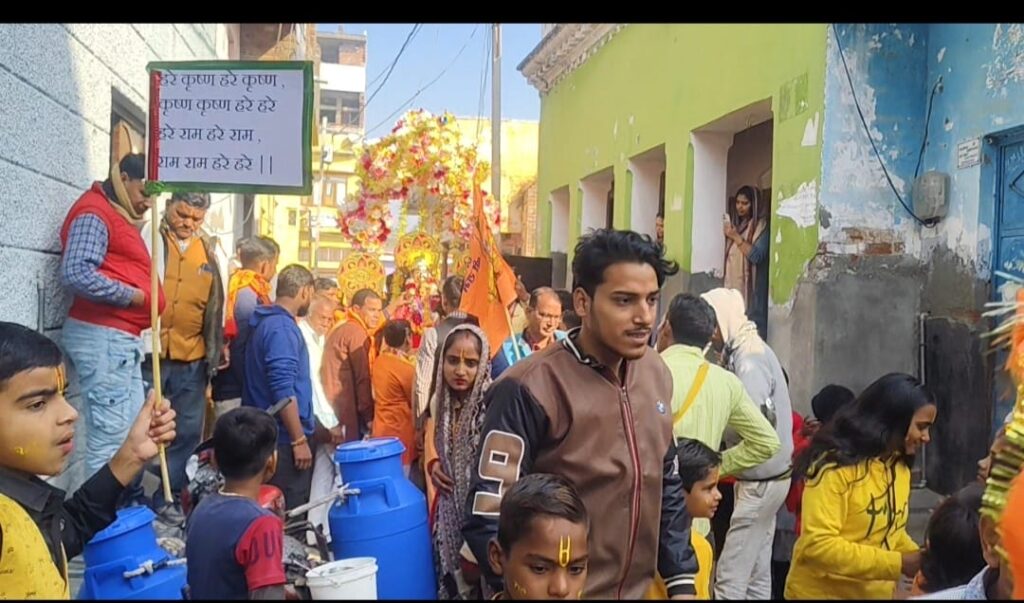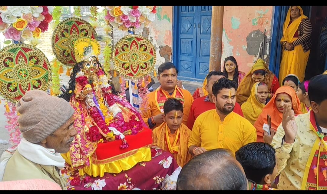 इसी बीच बड़ी ही धूमधाम के साथ भव्य शोभा यात्रा बैंड बाजों के साथ निकाल कर बांके बिहारी जी राम मंदिर में विराजमान किए इस दौरान नगर के मोहल्ला