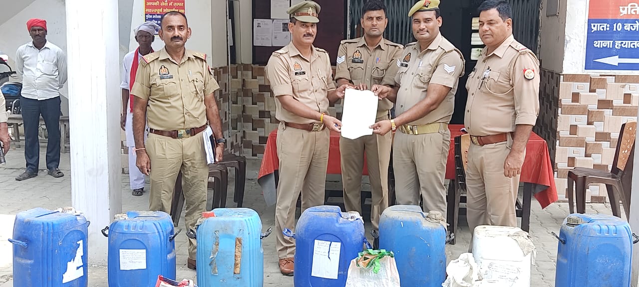 संभल। थाना हयातनगर जनपद सम्भल दिनाँक-28.06.2025 पुलिस अधीक्षक कृष्ण कुमार विश्नोई एवं अपर पुलिस अधीक्षक सम्भल राजेश कुमार श्रीवास्तव के कुशल निर्देशन तथा क्षेत्राधिकारी महोदय सम्भल, सहायक पुलिस अधीक्षक आलोक कुमार भाटी एवं थाना प्रभारी थाना हयातनगर संजीव कुमार सोम के कुशल नेतृत्व में मालखानों में रखे आबकारी मालों को