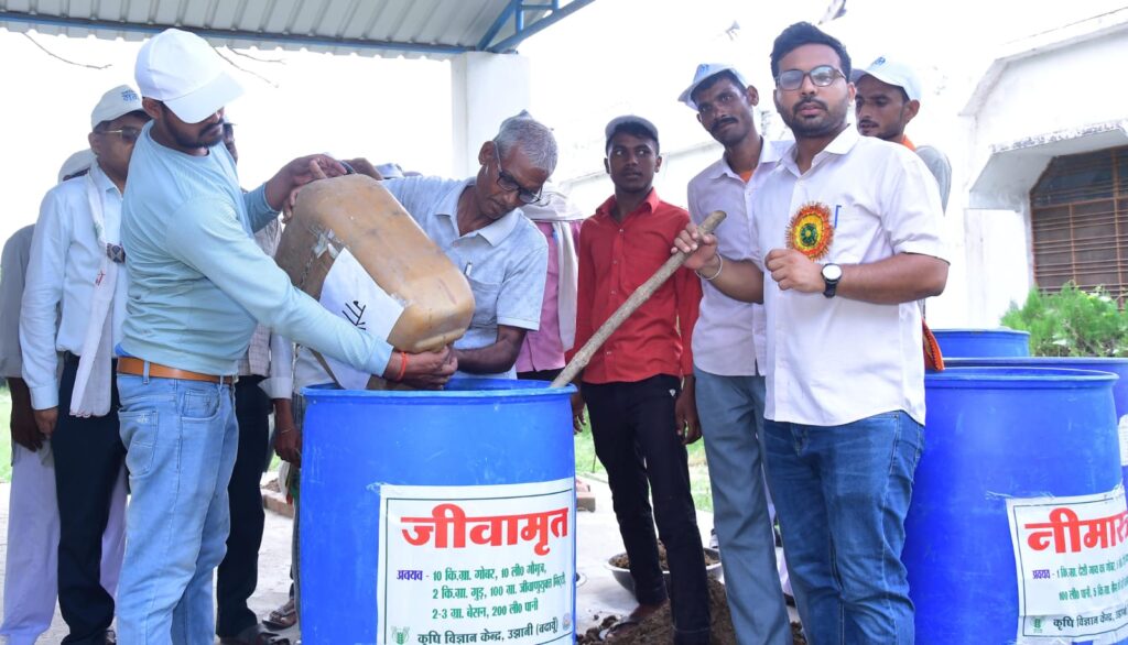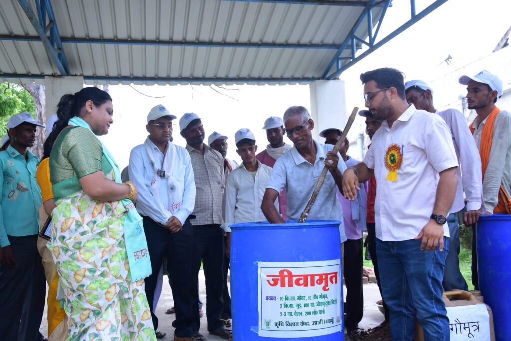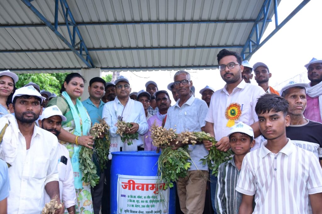 जाती है जिस किसी प्रकार की बीमारी नहीं होती एवं खेती के गुणवत्ता में भी सुधार आता है कार्यक्रम की विशिष्ट अतिथि सोनालिका सिंह नमामि गंगे यूनिट हेड ने कार्यक्रम में उपस्थित किसानों की भागीदारी पर प्रसन्नता व्यक्ति की एवं प्रशिक्षण में बताई गई जानकारी किसानों के अत्यंत उपयोगी हैं इसकी प्रशंसा जाहिर की प्राकृतिक खेती व खेती है जिसमें खाद्य के रूप में जीव अमृत एवं बीज के रूप ने बीजमृत का प्रयोग किया जाता है प्राकृतिक खेती गौ मूत्र और गौ गोबर गुड बेसन आदि पर आधारित है जिसमें अनेक किसान मित्र जीवाणु खेत में पनपते है एवं खेत को बंजर नहीं होने देते