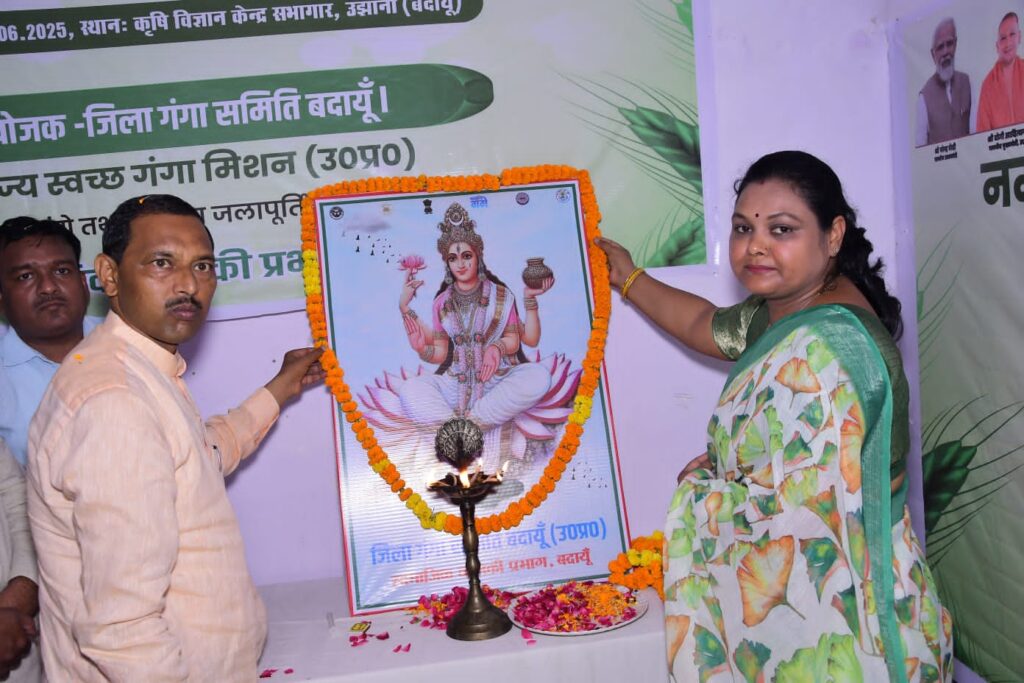 आज कृषि विज्ञान केंद्र उझानी में प्राकृतिक खेती पर नमामि गंगे एवं जिला गंगा समिति बदायूं द्वारा एक दिवसीय कार्यशाला का आयोजन किया गया प्रशिक्षण का शुभारंभ बिल्सी विधायक हरीश शाक्य ने मां गंगा के