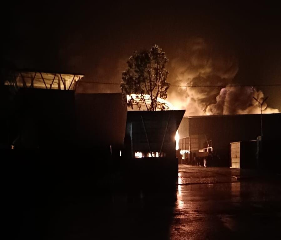 बिग्रेड व पुलिस बल मौजूद, फायर बिग्रेड के जवान लगातार आग को भुझाने का कर रहे है प्रयास, फैक्ट्री के