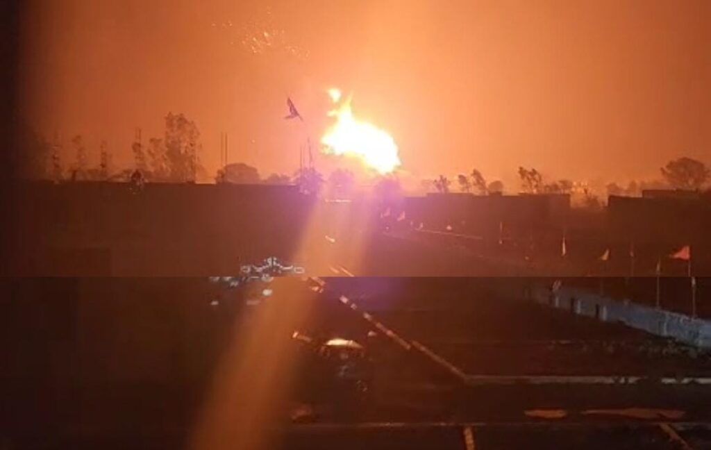 अंदर रखे नाइट्रोजन के सिलेंडर लगातार फट रहे हैं सिलेंडर से हो रहे हैं भयानक ब्लास्ट, पांच सो मीटर दूर