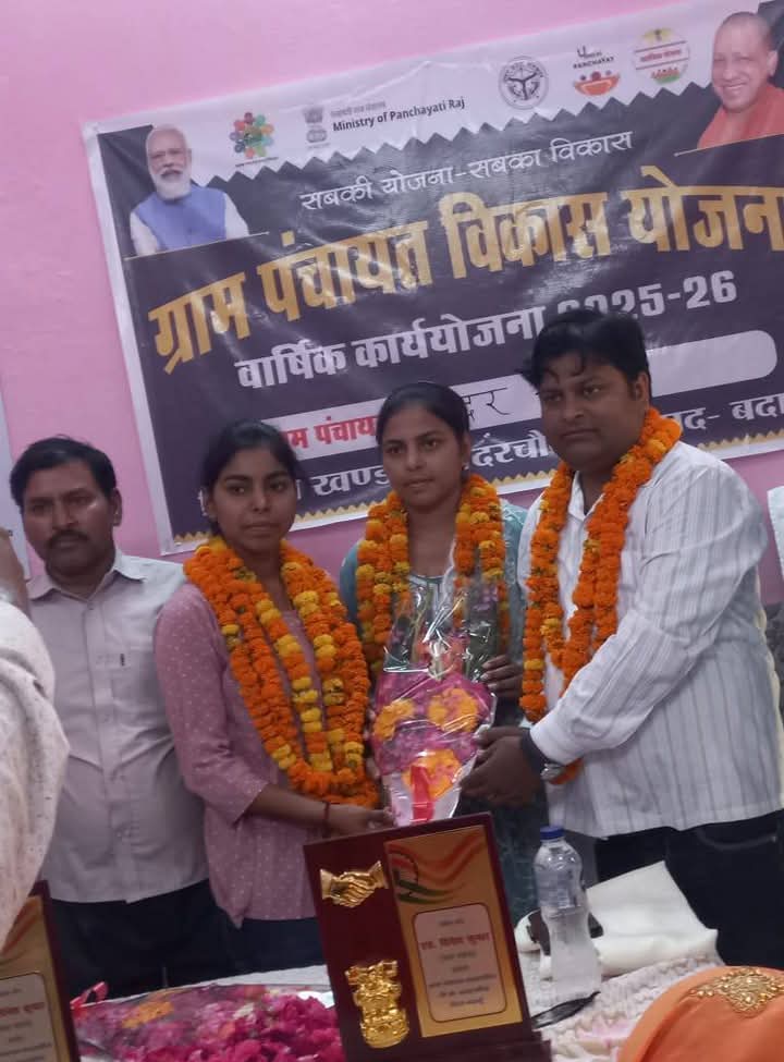 ट्रेनिंग पर जाते हुए ग्राम पंचायत कादरचौक के प्रधान दिनेश कुमार ब गांव के समस्त लोगों के द्वारा सम्मान समारोह किया गया सभी ग्रामवासी दोनों बहनों की