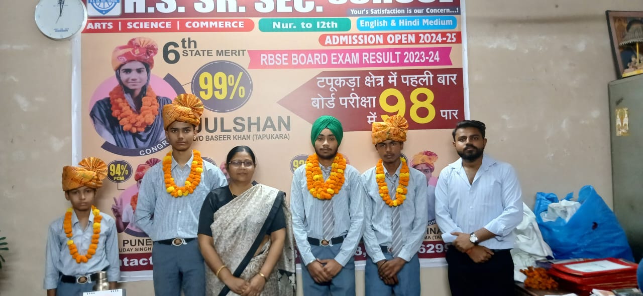 लक्ष्मीकांत ने 95.33 प्रतिशत अंक, नितिन पुत्र मक्खन सिंह ने 91.67% अंक, मोइन पुत्र वसीम खान ने 90.50% अंक प्राप्त कर माता-पिता, विद्यालय और क्षेत्र का नाम रोशन किया विद्यालय डायरेक्टर संतोष रानी गोरा ने बच्चों को मिठाई खिलाकर बधाई और शुभकामनाएं दी इस अवसर पर अभिभावक और शिक्षकगण मौजूद रहे।