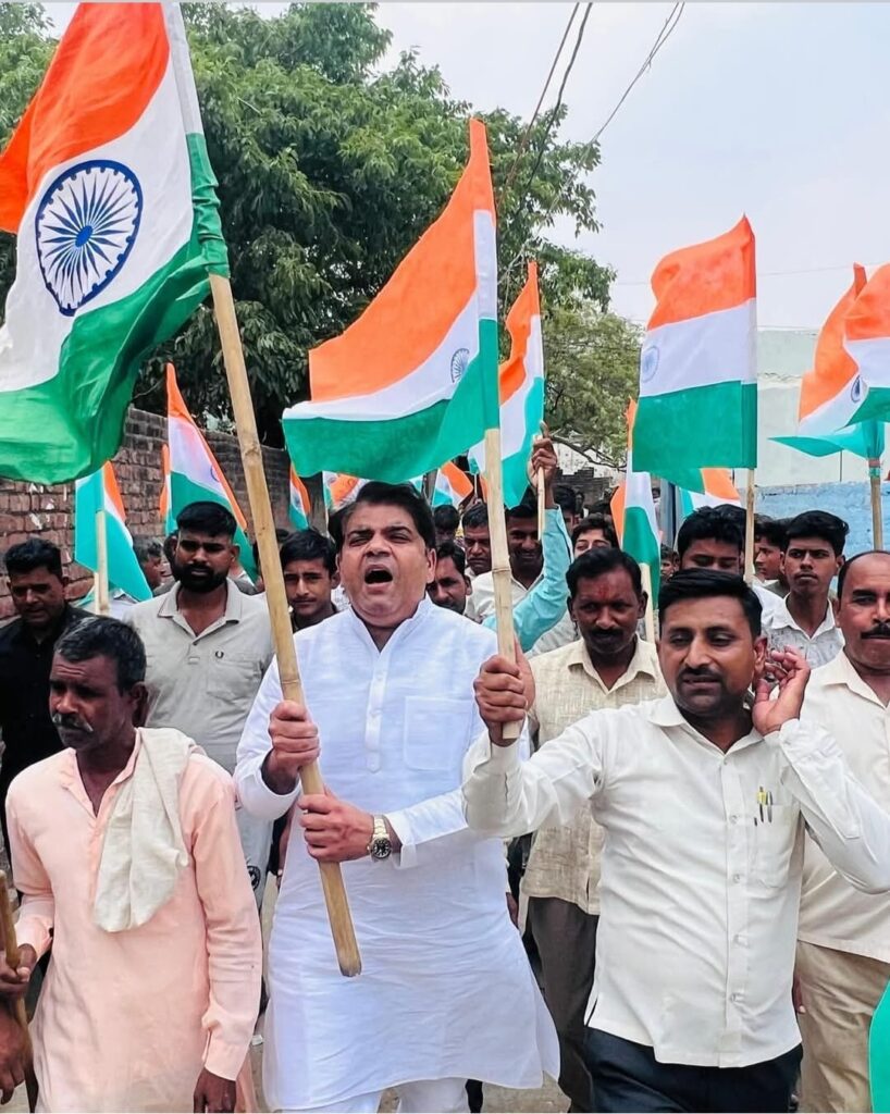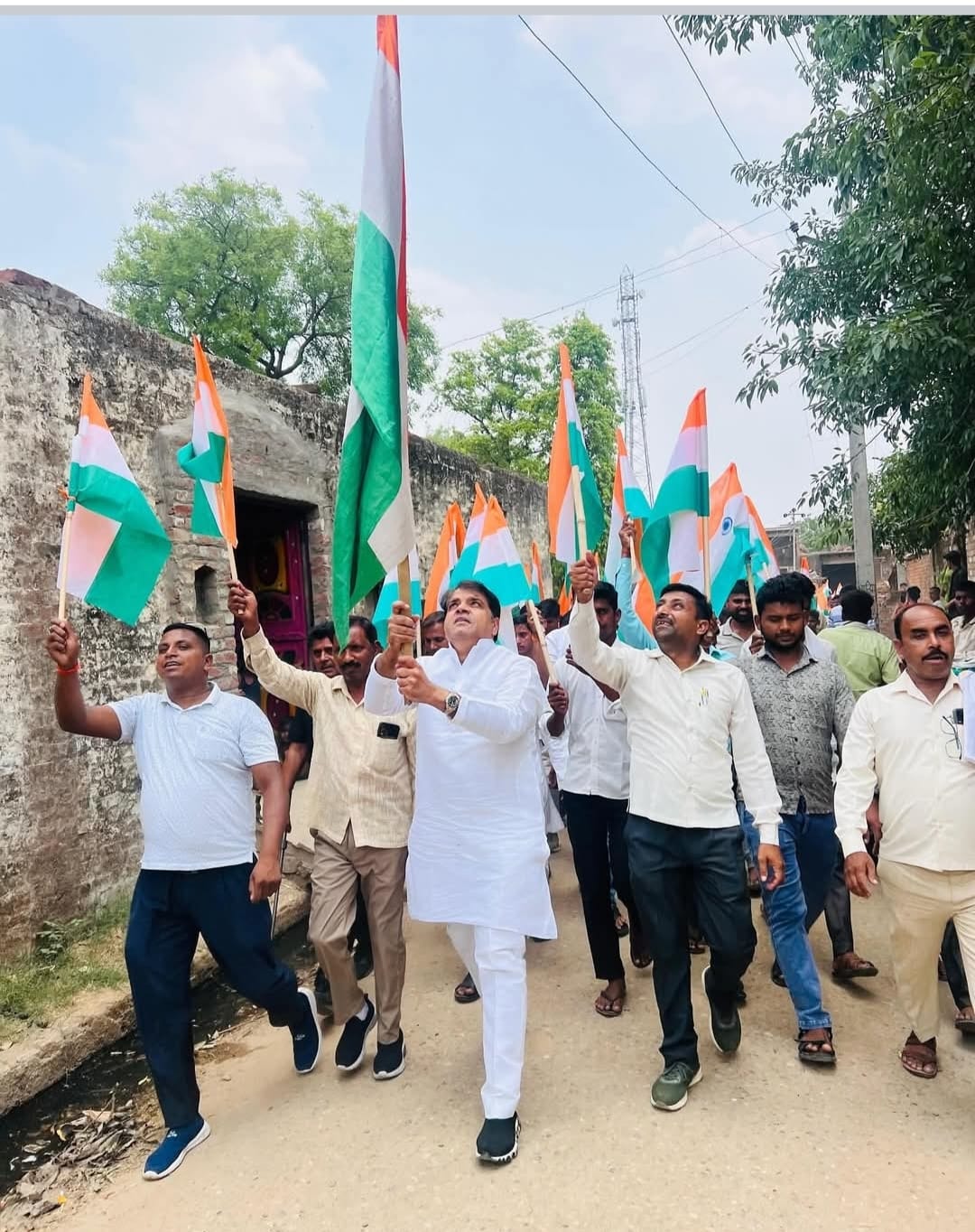 पहुंचकर ग्राम वासियों के साथ तिरंगा यात्रा निकाली हर हाथ में तिरंगा था मुट्ठीबंद हाथ उठाते और जोशीली आवाज में भारत माता के जयकारे लगाते हुए एवं पाकिस्तान मुर्दाबाद के नारों की गूंज अलग ही दिखाई दे रही थी तिरंगा यात्रा की रैली में ग्राम वासियों में अलग ही