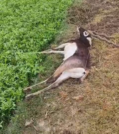 बदायूं।थाना इस्लामनगर क्षेत्र के गांव भवानीपुर में छुट्टा पशुओं से बचाने के लिए किसानों द्वारा खेत में कंटीले तार लगाए गए है कंटीले तारों में फंसकर काले हिरण की मौत हो गई। बताया जा रहा है कि खेतों में लगे कंटीले तारों में करंट आ रहा था।जिस कारण हिरण की मौत हुई। गुरुवार को सूचना मिलने पर वन विभाग के अधिकारी मौके पर पहुंचे। हिरण के शव का पोस्टमार्टम के लिए आईवीआरआई बरेली भेजा गया है।