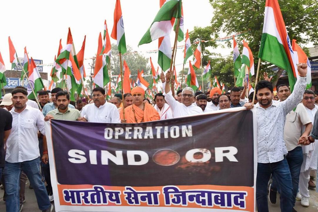 उन्होंने प्रधानमंत्री श्री नरेंद्र मोदी द्वारा वैश्विक मंच पर आतंकवाद के विरुद्ध लिए गए ऐतिहासिक और पराक्रमी निर्णय का भी उल्लेख किया। उन्होंने कहा कि भारत की सेनाओं ने उस निर्णय को धरातल पर उतारने में अपनी पराक्रम और क्षमता का पूर्ण प्रदर्शन किया है। इसी समर्थन में आज खैरथल की जनता ने यह भव्य तिरंगा यात्रा आयोजित की है।