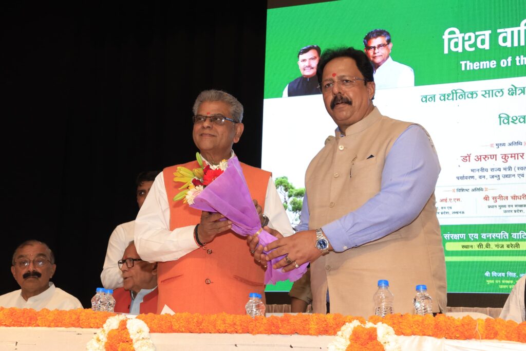 बरेली, 21 मार्च। वन एवं पर्यावरण मंत्री डॉ0 अरुण कुमार के मुख्य आतिथ्य में आज विश्व वानिकी दिवस के अवसर पर सी0बी0 गंज व स्मार्ट सिटी के ऑडिटोरियम जी.आई.सी. में कार्यक्रम आयोजित हुआ।