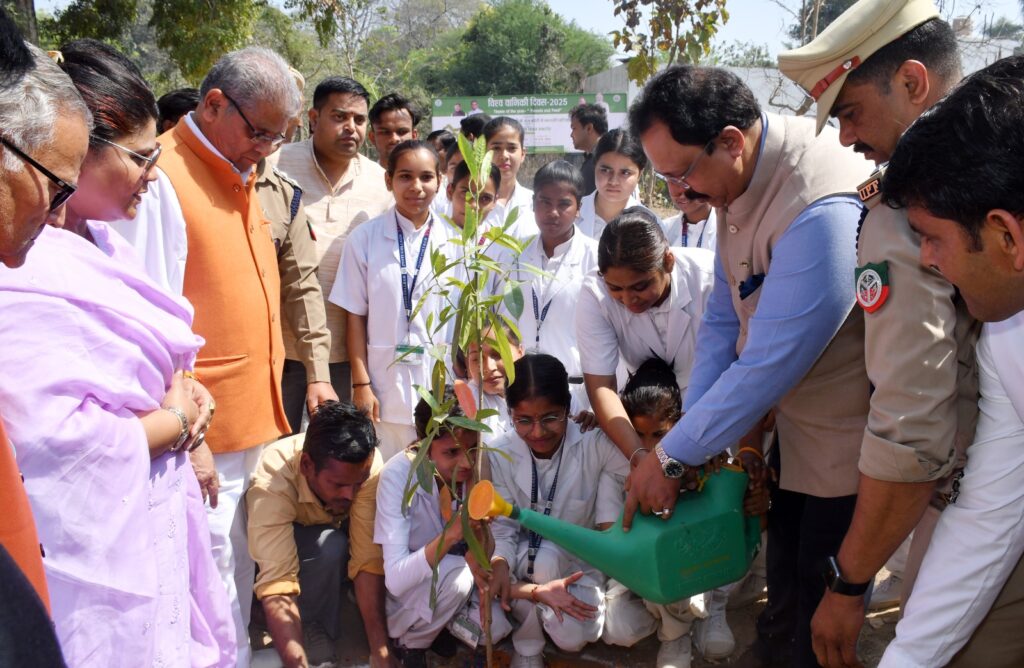 इस अवसर वन मंत्री ने अपने सम्बोधन में कहा कि पेड लगाओं-पेड बचाओं अभियान, हर खेत पर मेड, हर मेड पर पेड के विषय में जानकारी दी गयी। उनके द्वारा बताया गया कि 20 मार्च को गौरया दिवस मनाया जाता है, क्योंकि जीव जंतु व पक्षी भी हमारे पारिस्थितिक तंत्र का ही हिस्सा है। पूरे देश में 80 करोड़ पौधारोपण किया गया जबकि उत्तर प्रदेश में 36.50 करोड़ पौधारोपण किया, जिसकी सराहना प्रधानमंत्री द्वारा मन की बात में भी की गयी। उत्तर प्रदेश में 210 करोड़ पौधारोपण किया गया है, जिससे प्रदेश का ग्रीन एरिया 07 प्रतिशत से बढ़कर 9.96 प्रतिशत हो गया है जो कि देश में दूसरे स्थान पर है। वन मंत्री ने कहा कि भोजन के बिना हम लोग 07 दिन, पानी के बिना 03 दिन रह सकते हैं किन्तु ऑक्सीजन के बिना 03 मिनट भी जीना मुश्किल है। मंत्री जी ने ग्लोबल वार्मिग के विषय में विस्तार से जानकारी देते हुए बताया कि कॉर्बन डाई ऑक्साईड जो कि ग्लोबल वार्मिग के लिये जिम्मेदार है, को कम करने का सबसे आसान तरीका है कि हम अधिक से अधिक पौधारोपण करें। घर के आस-पास फलदार पौधे लगाये, जिससे कि बच्चों का मन व स्वास्थ्य अच्छा बना रहे। बन मंत्री ने अपील की कि नगर निगम के पार्कों, औद्योगिक इकाइयों के परिसरों, सडक के दोनों ओर व डिवाडर, स्कूल, अस्पताल, कॉलेज, तालाब, नदियों के किनारे आदि रिक्त स्थानों पर पौधारोपण किया जाये और उनकी सुरक्षा भी की जाये। बन मंत्री ने यह भी अपील करी कि प्रत्येक व्यक्ति एक पेड़ मॉ के नाम अवश्य लगाये और उसको पानी व उसकी सुरक्षा करें।