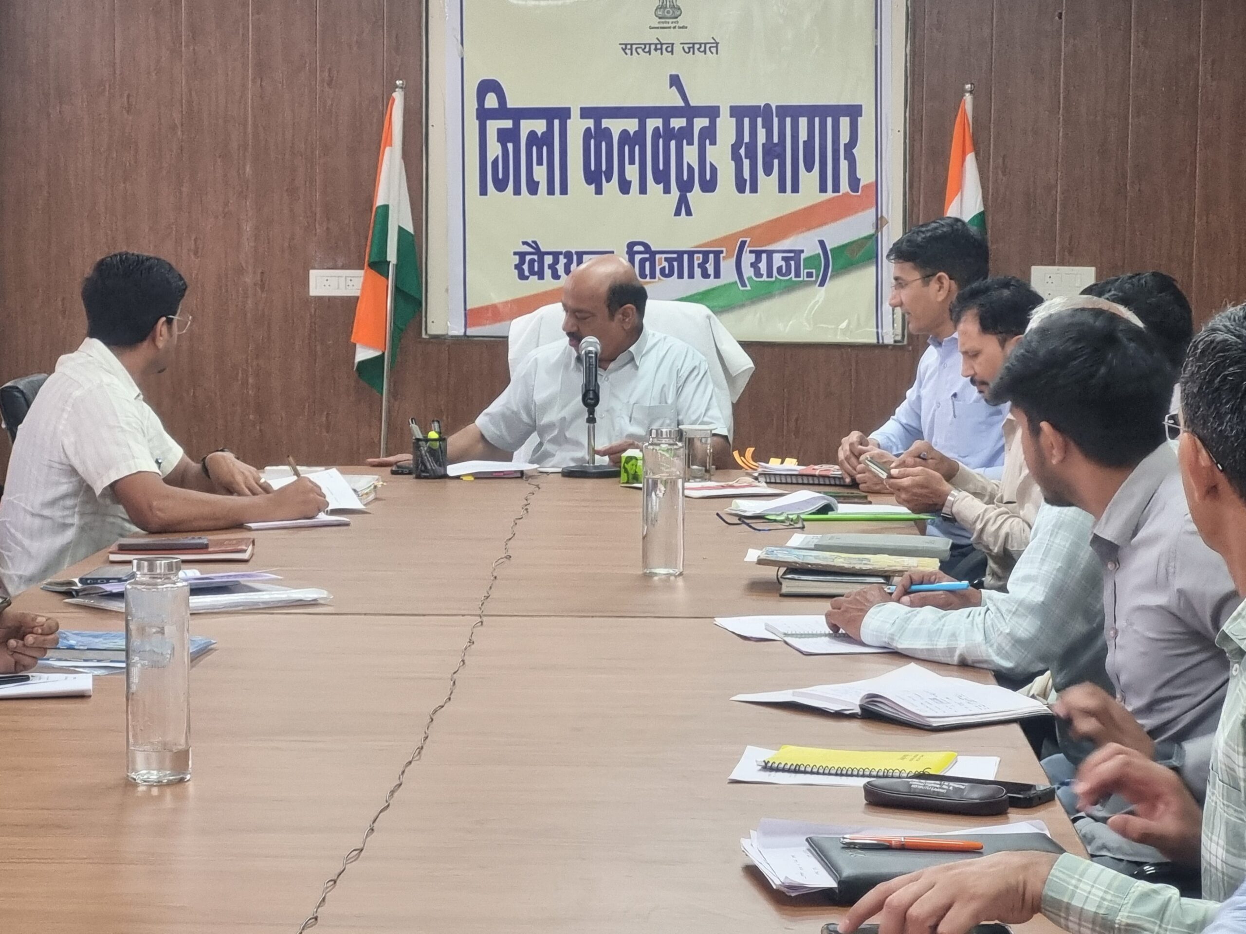 खैरथल-तिजारा 7 अप्रैल जिला कलेक्टर किशोर कुमार की अध्यक्षता में सोमवार को जिला कलेक्ट्रेट सभागार में विभिन्न विभागों की साप्ताहिक समीक्षा बैठक आयोजित हुई।