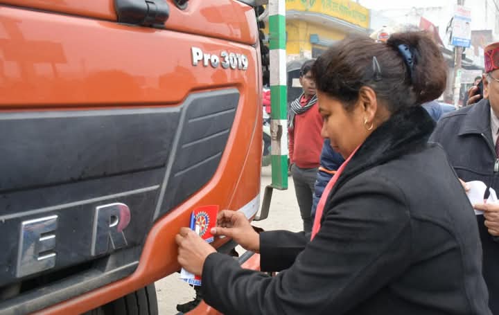 सड़क सुरक्षा जीवन रक्षा अभियान अंतर्गत डीएम ने वाहनों पर लगाए रिफ्लेक्टर