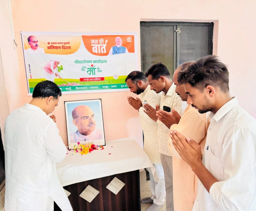बदायूं। भारतीय जनता पार्टी ने 2575 बूथों पर कार्यकर्ताओं ने प्रधानमंत्री नरेंद्र मोदी के मासिक रेडियो कार्यक्रम मन की बात को सामूहिक रूप से सुना। डॉ. श्यामा प्रसाद मुखर्जी की पुण्यतिथि को बलिदान दिवस के रूप में उनके चित्र पर पुष्पांजलि एवं विचार गोष्ठी करके मनाया। इसके साथ ही प्रदेश नेतृत्व के आवाहन पर एक पेड़ मां के नाम का विशेष अभियान चलाकर वृक्षारोपण किया। पार्टी के जनप्रतिनिधियों, पदाधिकारियों व कार्यकर्ताओं ने बड़ी संख्या में बढ़-चढ़कर भाग लिया।