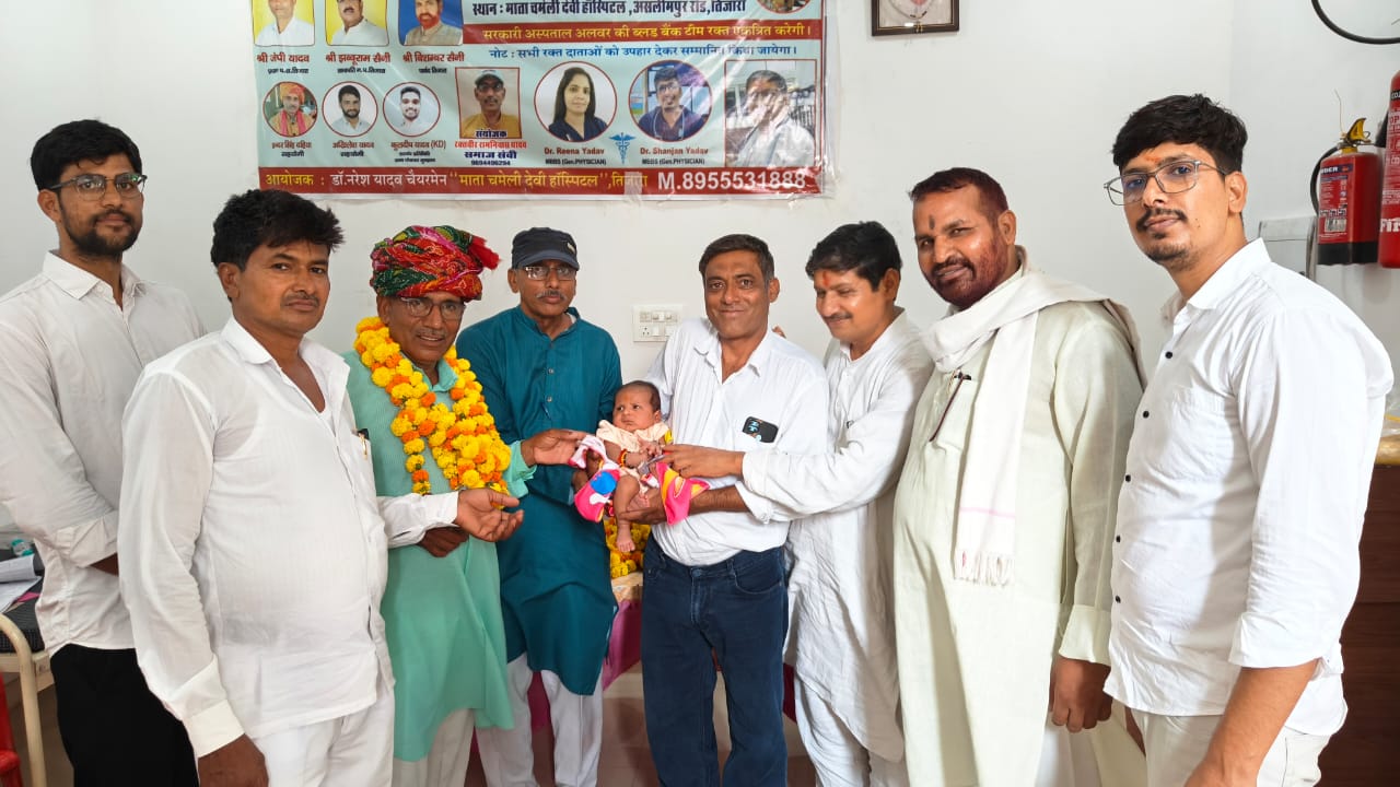 अस्पताल निदेशक नरेश यादव के पोते के जन्म की खुशी में हुआ आयोजन इस अवसर पर तिजारा