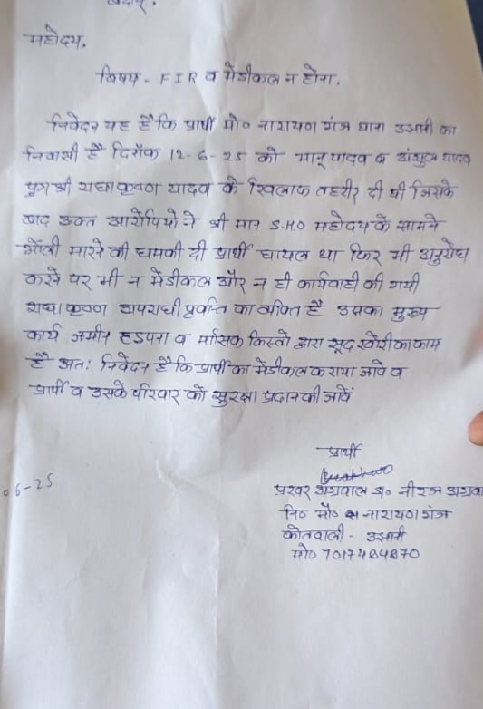 कोतवाली क्षेत्र के मोहल्ला नारायण गंज निवासी प्रखर अग्रवाल पुत्र नीरज अग्रवाल ने बताया है कि भानु यादव, अंशुल यादव पुत्र राधाकृष्ण यादव ने गुरुवार को मुझसे मारपीट करके घायल कर दिया था और थाने में ही दबंगों ने मुझे जान मारने की धमकी दी थी जिसकी शिकायत मैंने थाना पुलिस से कि मगर अभी तक कोई कार्रवाई