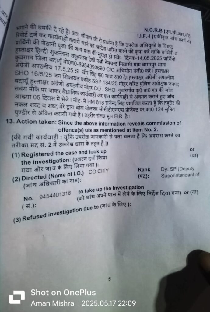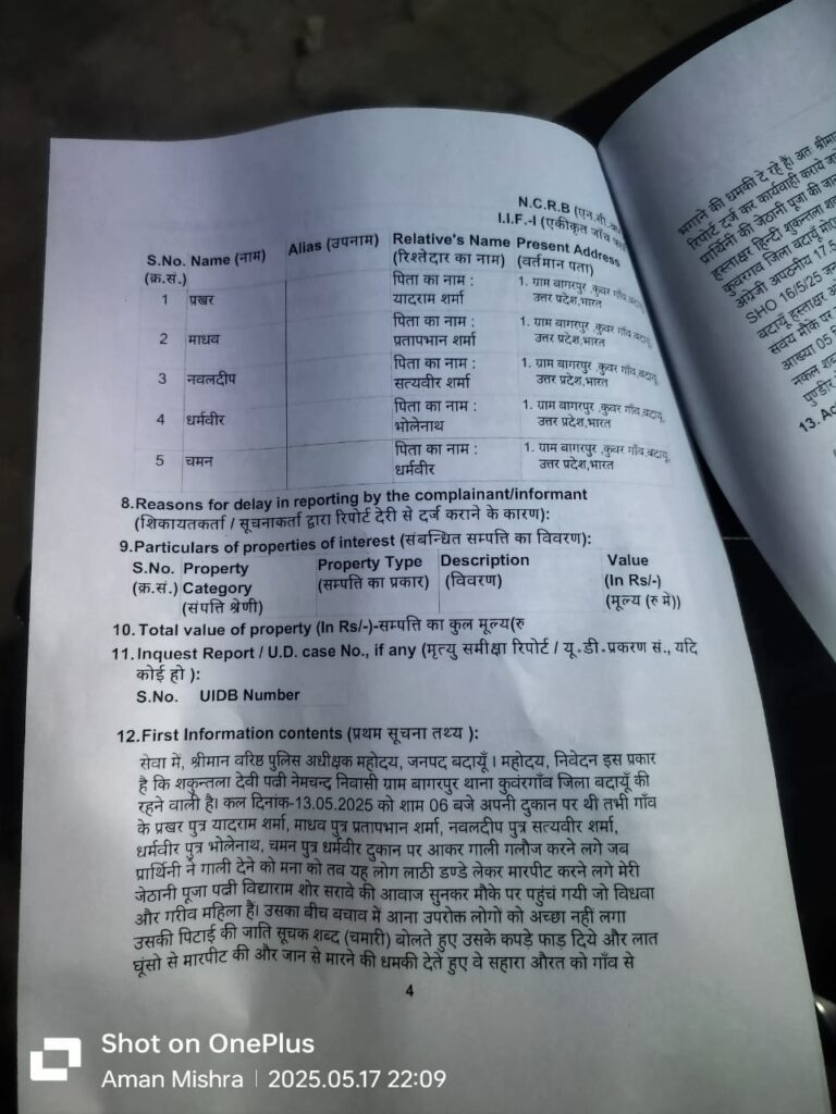थाना क्षेत्र के गांव बागरपुर निवासी शकुंतला देवी पत्नी नेमचंद ने शनिवार को एसपी को प्रार्थना पत्र देकर बताया कि घटना 13 मई शाम 6:00 बजे की है दलित