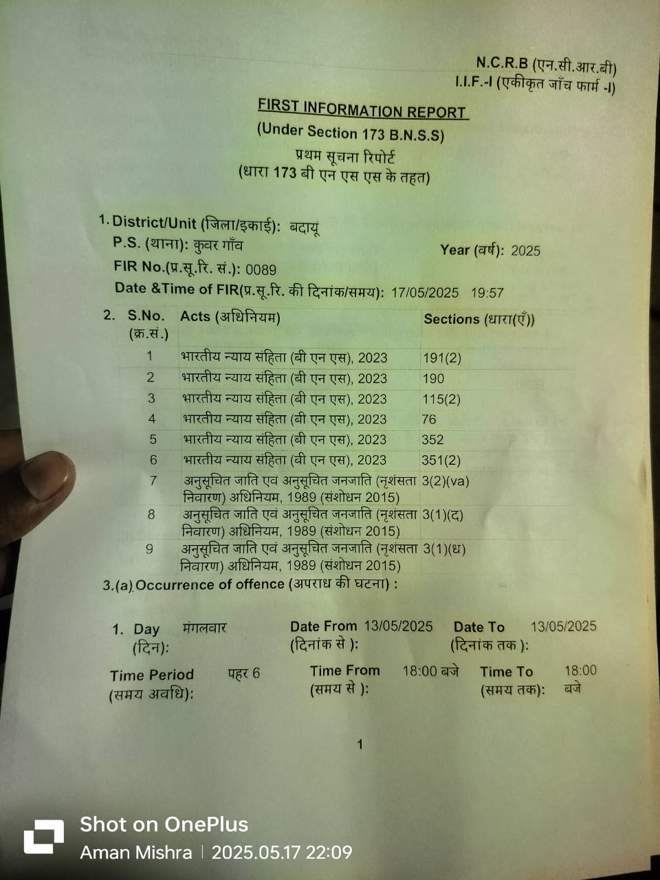 थाना क्षेत्र के गांव बागरपुर निवासी शकुंतला देवी पत्नी नेमचंद ने शनिवार को एसपी को प्रार्थना पत्र देकर बताया कि घटना 13 मई शाम 6:00 बजे की है दलित