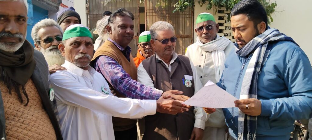कुर्बानी देकर किसानों ने तीन कृषि कानून बिल वापिस कर आए थे उन्हें फिर से नई कृषि नीति के नाम से लागू करने जा रही है। केंद्र सरकार उद्योगपति पूंजीपतियों की कटपुतली बनकर कर रही है। सदर तहसील अध्यक्ष अर्जुन सिंह व जिला उपाध्यक्ष ठाकुर अजयपाल सिंह बाबा जी ने कहा केंद्र सरकार किसान को देश के पूंजीपतियों और उधोगपति के हवाले करने जा रही है। इस अवसर पर जिले के प्रमुख महासचिव नरेंद्र कुमार सक्सेना, ब्लॉक सलारपुर अध्यक्ष पप्पू सैफी, वरिष्ठ नेता दानवीर सिंह यादव,भंवर पाल सिंह, कल्लन मियां, तस्लीम गाजी,इरफान अली , बृजपाल प्रजापति, ठाकुर कृष्णपाल सिंह, अजब सिंह राजपूत समेत दर्जनों नेता सम्मिलित रहे।