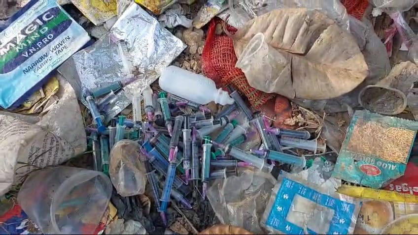नबादा चौकी से कुछ दूरी पर स्थित आरबोरेटम के बाहर खुले में सिरिंज फेंकी जा रही और सिरिंज, बेजुबानो के लिए इससे बड़ा खतरा हैकुछ समय पूर्व इंदिरा चौक स्थित कबीर मार्केट के सामने कूड़े के ढेर में पड़ी मिलती थी जिससे कई घुमंतू गायों हो की मौत हो चुकी है। प्रदूषण विभाग स्वास्थ्य विभाग के अधिकारी निजी अस्पताल के संचालकों पर कार्रवाई नहीं कर रहे हैं बल्कि आंखें बंद करके बैठें हैं।