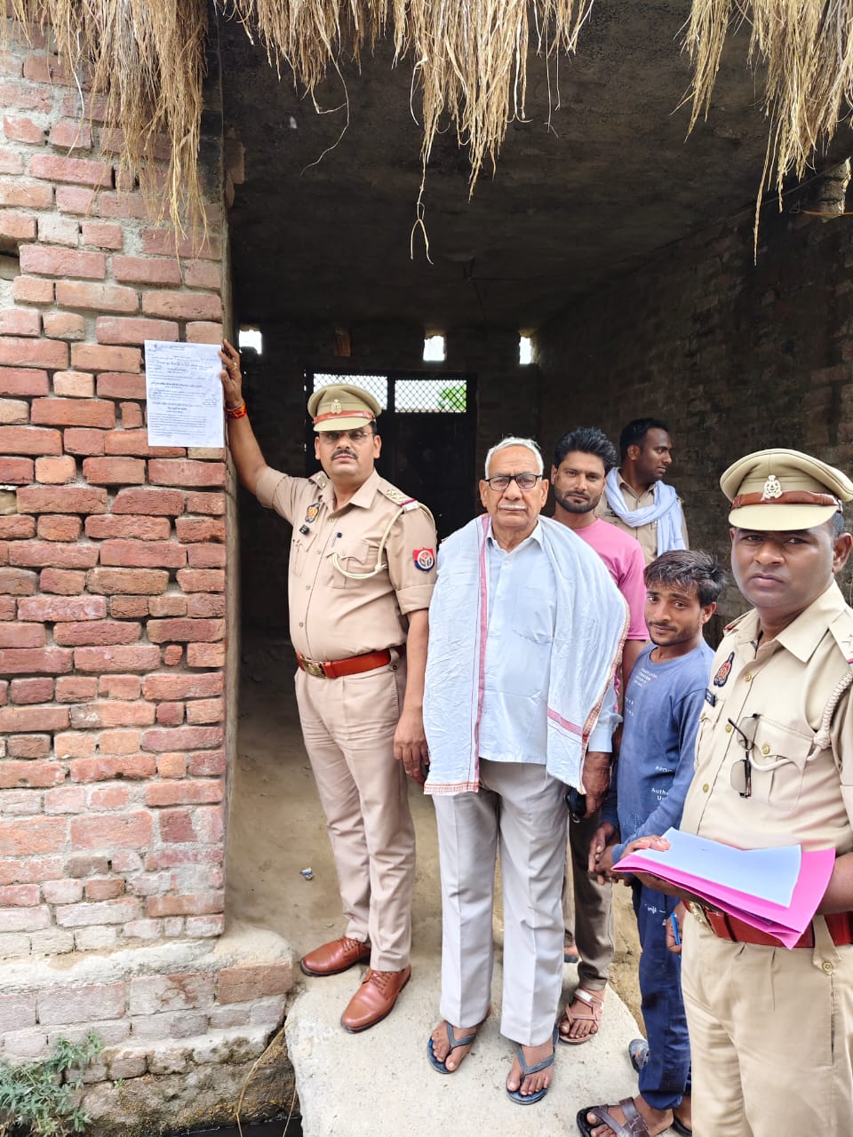 सम्भल। पुलिस अधीक्षक कृष्ण कुमार बिश्नोई एवं अपर पुलिस अधीक्षक दक्षिणी,अनुकृति शर्मा के कुशल निर्देशन में थाना जुनावई पुलिस टीम द्वारा थाना जुनावई पर पंजीकृत मु0अ0सं0 72/2025 धारा 103(1)/123/333/352/61(2) बी0एन0एस0 के वांछित अभियुक्त धर्मवीर उर्फ धम्मा पुत्र मोहन सिंह निवासी गांव मैडोली थाना जुनावई जनपद संभल के विरुद्ध माननीय न्यायालय मुख्य न्यायाधीश स्थित चंदौसी जनपद सम्भल के आदेश अंतर्गत धारा 84 BNSS का पालन करते हुए ग्राम मैडोली में अभियुक्त धर्मवीर उर्फ धम्मा उपरोक्त के घर के सदृश्य भाग, सार्वजनिक स्थान, अस्पताल ,ब्लॉक, थाना नोटिस बोर्ड एवं मा0 न्यायालय नोटिस बोर्ड पर नोटिस चस्पा किये गये है,एवं ग्राम में ढोल बजाकर सर्व समाज को माननीय न्यायालय का आदेश से भली-भांति अवगत कराते हुए व्यापक प्रचार-प्रसार किया गया है।