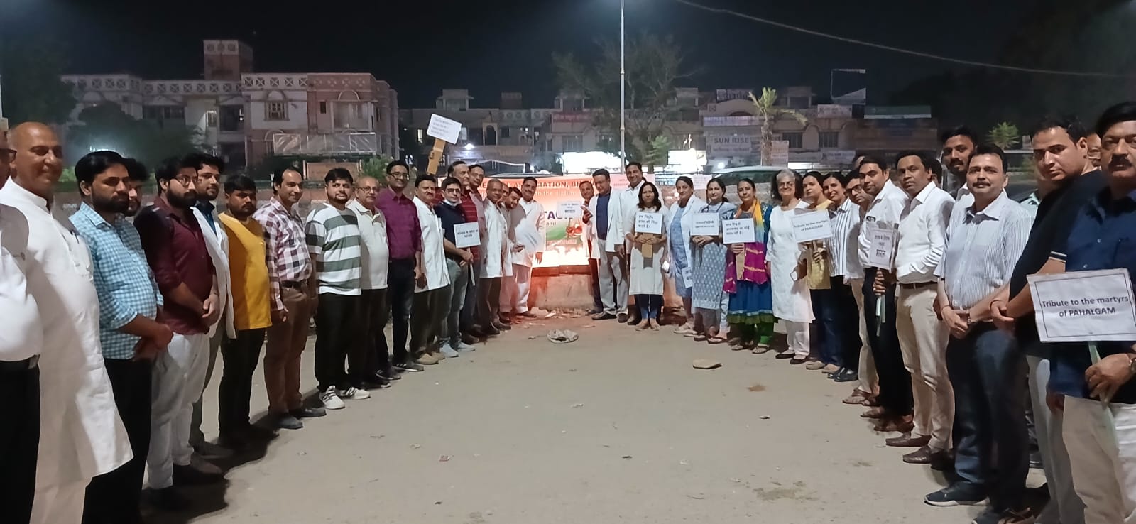 एक कैंडल मार्च और मोहन जुलूस निकाला गया जिसमें संयोजक डॉक्टर रूप सिंह हाईवे के अध्यक्ष डॉ अजय गोयल सचिव डॉक्टर मोदी अध्यक्ष डॉक्टर मनीष चौहान भारत विकास परिषद के अमित नहाता रु आशियाना