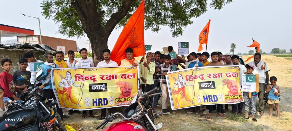 पहलगाम में हुई 22 अप्रैल को आतंकी घटना में मारे गए बेगुनाह और निर्दोषों को निहत्थे पाकिस्तानी आतंकी द्वारा गोली चलाकर धर्म पूछते हुए हिन्दू भाईयों निर्मम हत्या कर दी गई उसके विरोध में हिन्दू रक्षा दल बदायूं के