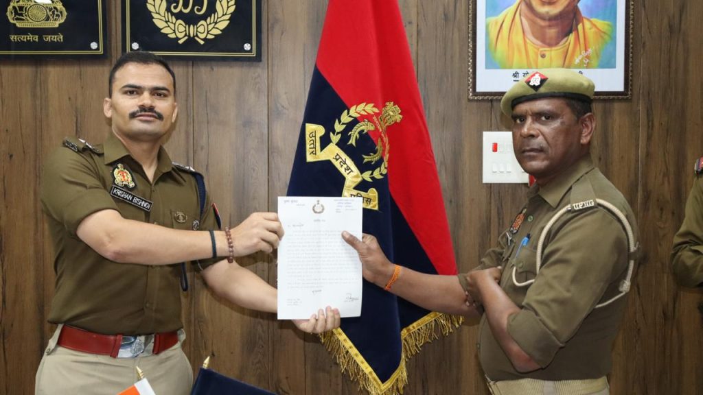 संभल। यूपी के जनपद सम्भल में पुलिस अधीक्षक कृष्ण कुमार ने यूपी 112 के निम्न कर्मचारी गण को उनके द्वारा किए गए सराहनीयकार्य के लिये प्रशस्ति पत्र प्रदान कर सम्मानित किया गया है,