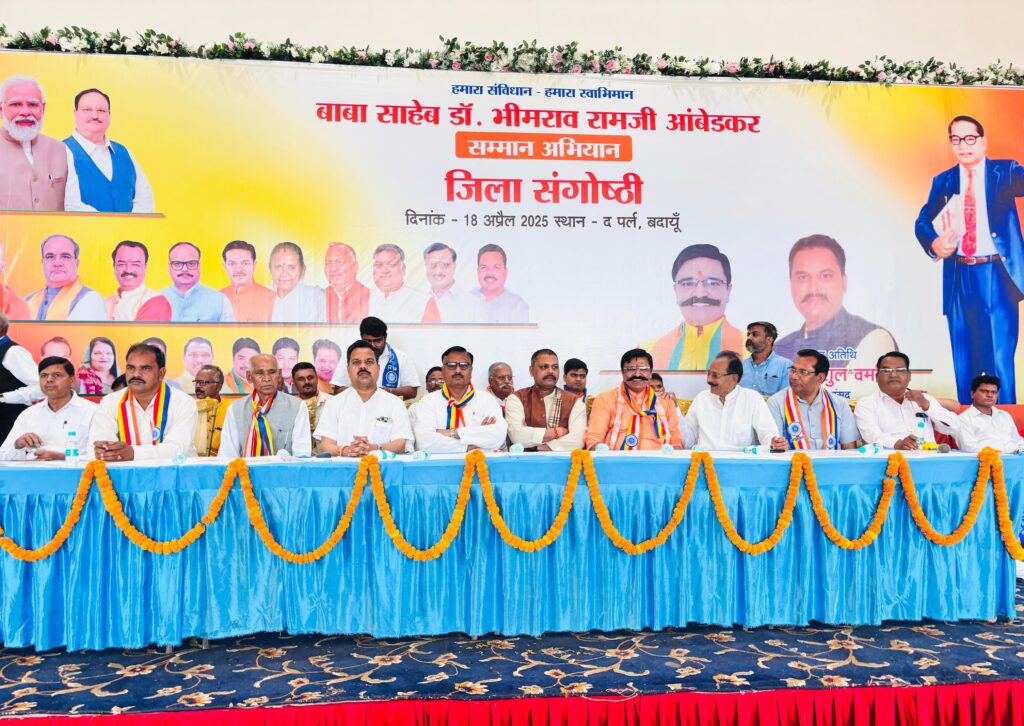 बदायूं :- भारत रत्न बाबा साहब डॉ० भीमराव रामजी अम्बेडकर सम्मान अभियान के अंतर्गत भाजपा के तत्वाधान में जिला संगोष्ठी का आयोजन शहर के द पर्ल लॉन बदायूं में संपन्न हुआ।