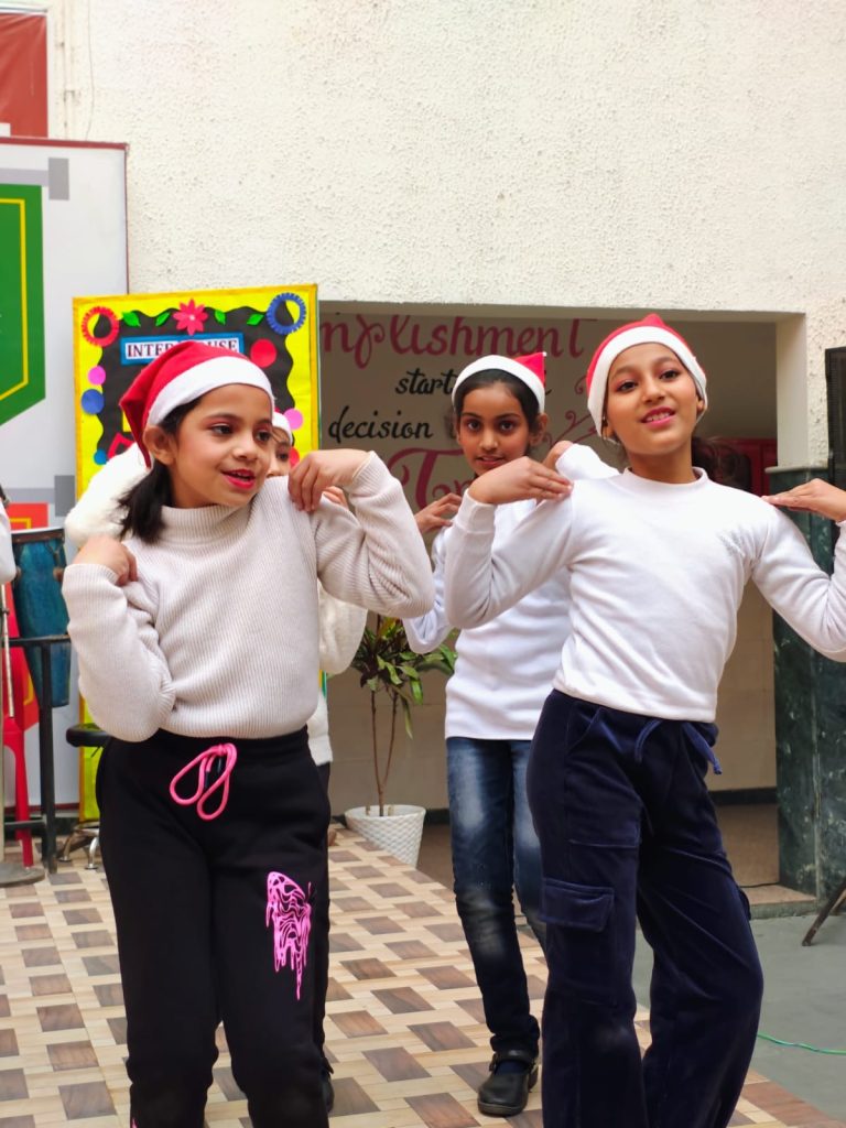 का आयोजन किया गया, जिसमें बच्चों ने सेण्टा क्लाज, प्रभु यीशु, मरियम आदि के रूप धारण कर सभी को मंत्रमुग्ध कर दिया। कार्यक्रम इतना मनमोहक रहा कि कार्यक्रम के दौरान कार्यक्रम स्थल तालियों की गड़गड़ाहट से गूंजता रहा। बच्चों ने अपने सुमधुर गायन एवं अपनी भाव-भांगमाओं से सभी के हृदय को रोमांचित कर भाव विभोर कर दिया। इस मौके पर स्कूल अध्यक्षा पम्मी मेंहदीरत्ता ने सभी को ‘क्रिसमस डे’ की
