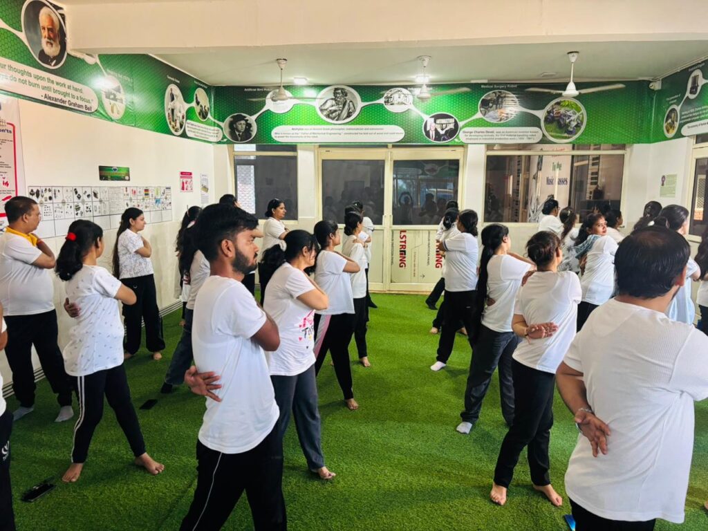 दिन-प्रतिदिन गिरते स्वास्थ्य के कारण व निवारण के विषय में परिचर्चा करते हुए अनेक महत्वपूर्ण योग व व्यायाम के विषय में बताया एवं अभ्यास भी कराया गया।