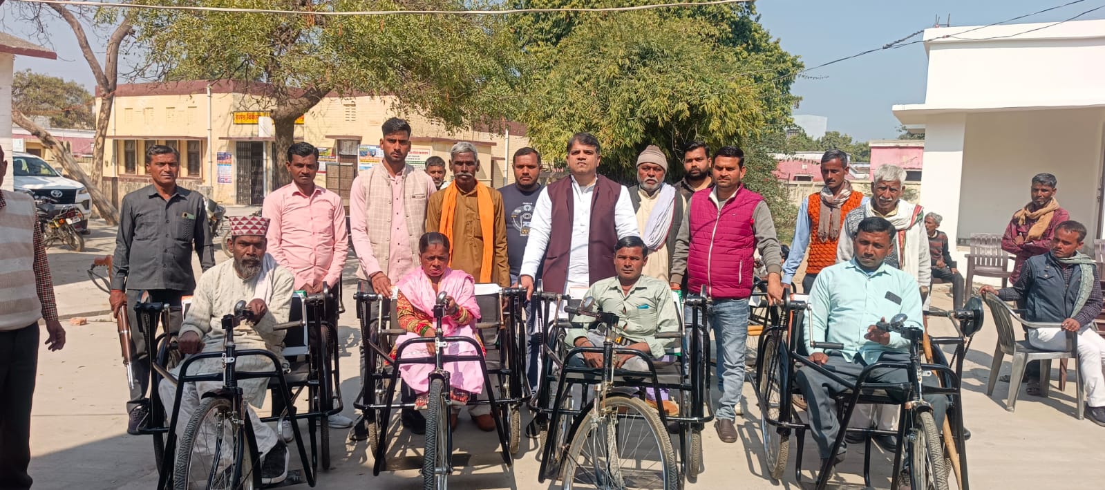 तमाम योजनाओं की जानकारी दी इसके बाद दिव्यांग जनों को ट्राई साइकिल का वितरण किया दिव्यांग व्यक्तियों का ट्राई साइकिल पाकर चेहरे पर खुशी दिखाई दी इस मौके पर खंड विकास अधिकारी एवं सभी विभागों के अधिकारी और कर्मचारी उपस्थित रहे।