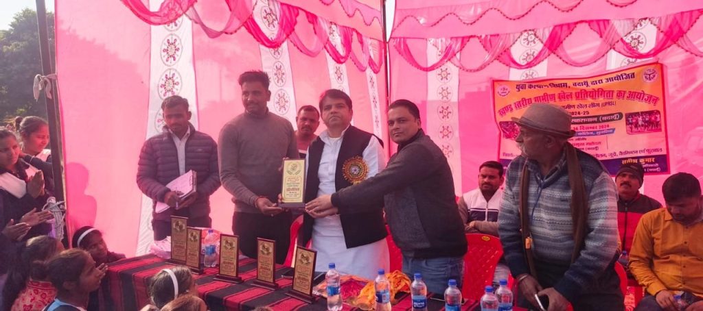 कबड्डी, व खो खो, व वॉलीबॉल, एवं दौड़ में आए जूनियर एवं सीनियर बालक व बालिकाओं को उपहार देकर सम्मानित किया गया।