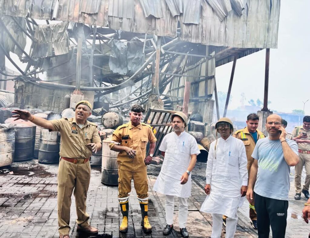 उझानी :- बीती रात मेंथा ऑयल फैक्ट्री में भीषण आग लगने के बाद आज भाजपा जिलाध्यक्ष राजीव कुमार