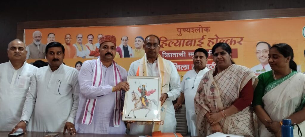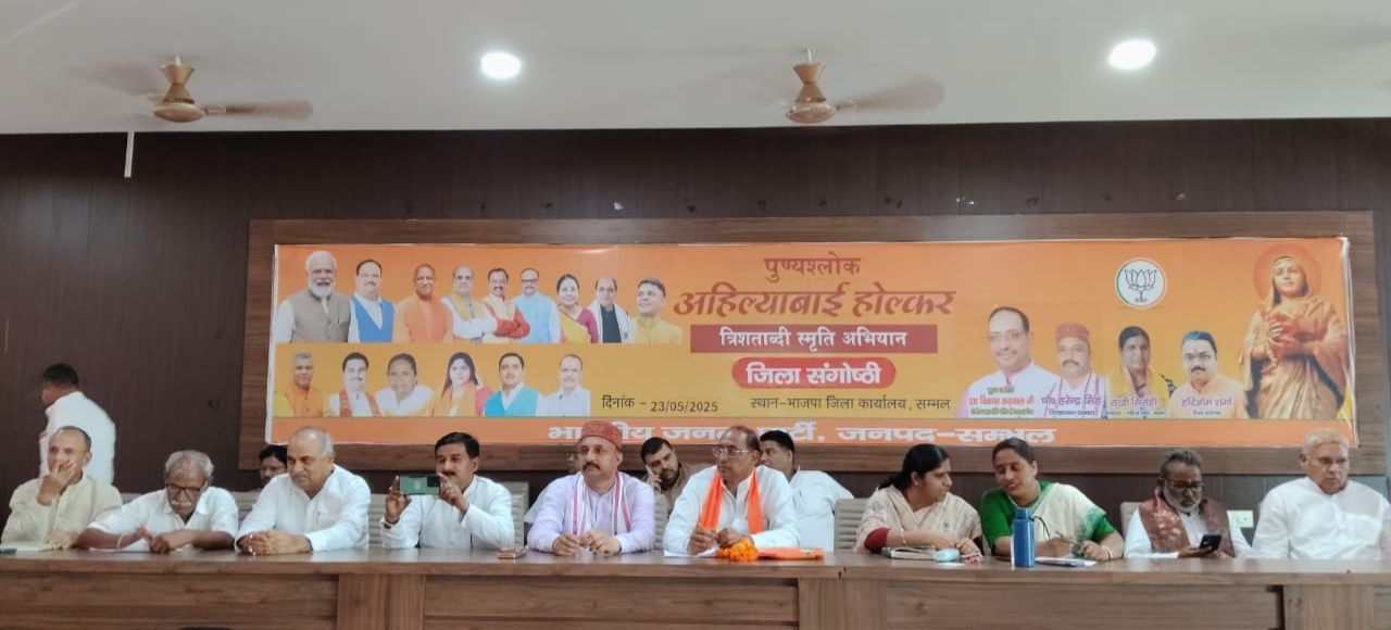 संभल। यूपी के जनपद सम्भल में एकता विहार कालोनी सम्भल स्थित भाजपा जिला कार्यालय में महारानी अहिल्याबाई होलकर जन्म त्रिशताब्दी स्मृति वर्ष अभियान की जिला संगोष्ठी का शुभारंभ रानीअहिल्याबाई होलकर,पं दीनदयाल उपाध्याय,डॉ श्यामा प्रसाद मुखर्जी के चित्र के समक्ष प्रज्ज्वलित एवम पुष्प अर्पित कर किया गया है,मुख्य अतिथि क्षेत्रीय महामंत्री डॉ विकास अग्रवाल,जिला पंचायत अध्यक्ष डॉ अनामिका यादव,जिलाध्यक्ष चौधरी हरेंद्र सिंह,पूर्व