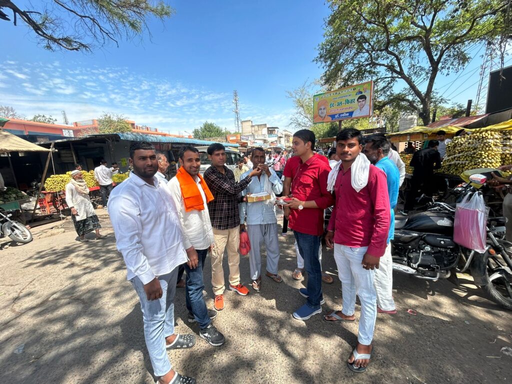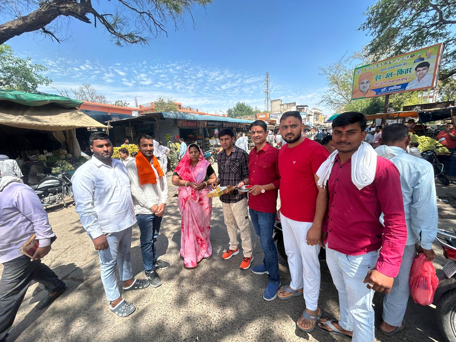में, भाजपा युवा मोर्चा के कार्यकर्ताओं ने विकास पथ पर एकत्रित होकर भारत माता की जय के नारों के साथ आने जाने वाले लोगों को तिलक लगाकर लड्डू वितरण किए। इस दौरान सभी से आग्रह भी किया गया कि घरों पर भगवा तिरंगा फहराये व दीपक जलाकर खीर का