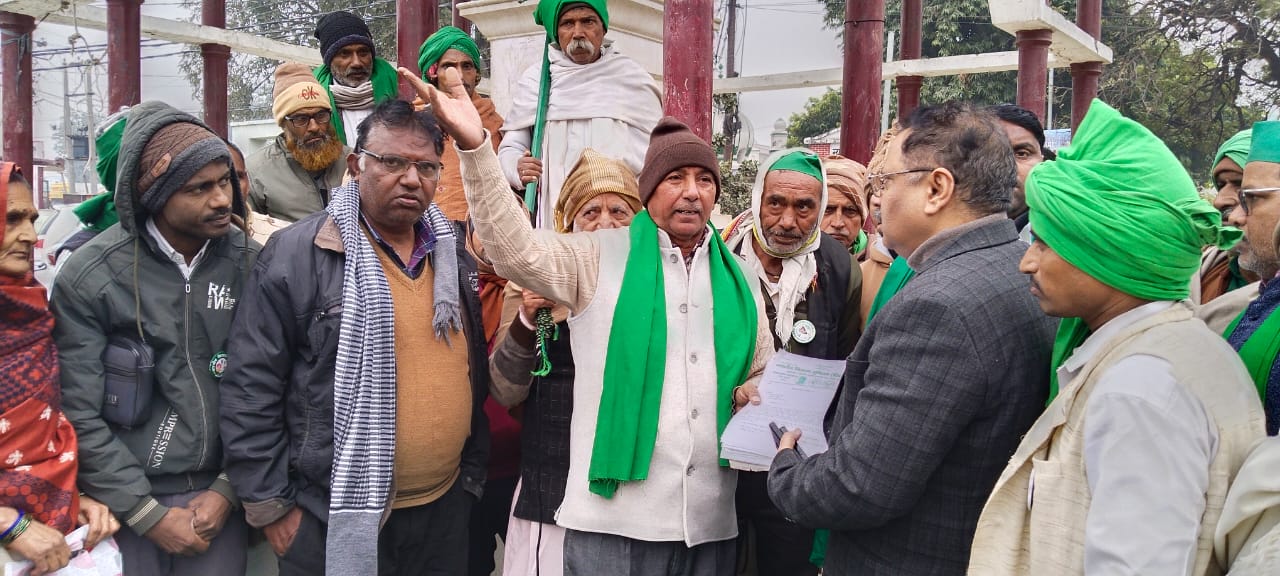 किया गया।कड़ाके की सर्दी में सैकड़ो की संख्या में हरी टोपी धारी दोपहर तक मालवीय आवास गृह में एकत्र हुए। मंडल उपाध्यक्ष चौधरी सौदान सिंह जिला अध्यक्ष रामाशंकर शंखधार मंडल प्रवक्ता राजेश कुमार सक्सेना के राष्ट्रीय कार्यक्रम को कुशल नेतृत्व में किया गया। मंडल के वरिष्ठ उपाध्यक्ष चौधरी सौदान सिंह ने कहा देश के प्रधानमंत्री अन्न दाताओं के साथ जुल्म कर रहे हैं। एमएसपी कानून की गारंटी का वादा करके मुकर गए हैं देश की किसानों के साथ धोखा किया गया है। जिला