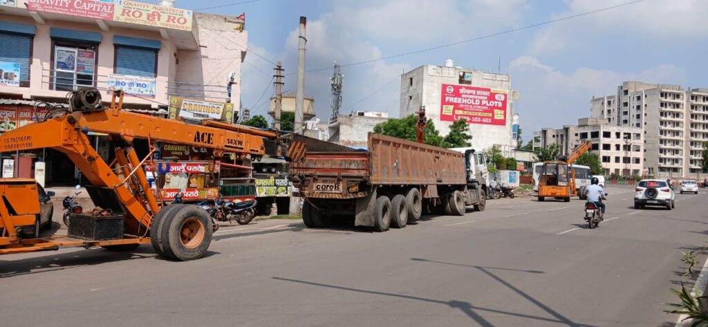 भी उसमें धंस गये। बड़ी मुश्किल से तीन हाईड्रा मशीन लगाकर ट्रेलर को बाहर निकाला गया।