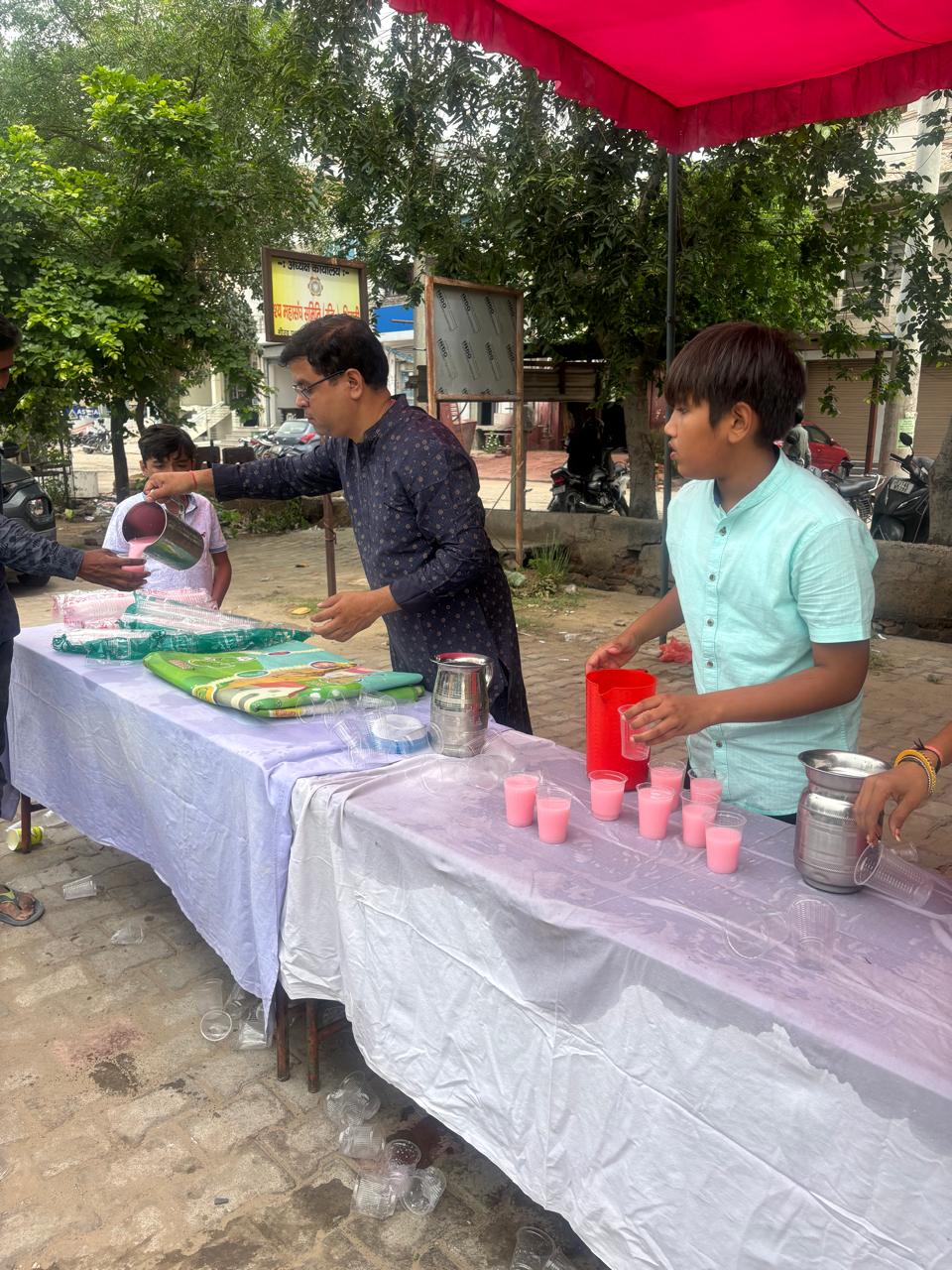 भिवाड़ी। के. डी. एम स्कूल भिवाडी की तरफ से गौरव पथ पर शरबत पानी पिलाया गया। सैकड़ो लोगो ने पानी पीकर अपनी प्यास बुझाई। प्यासे को पानी पिलाना एक