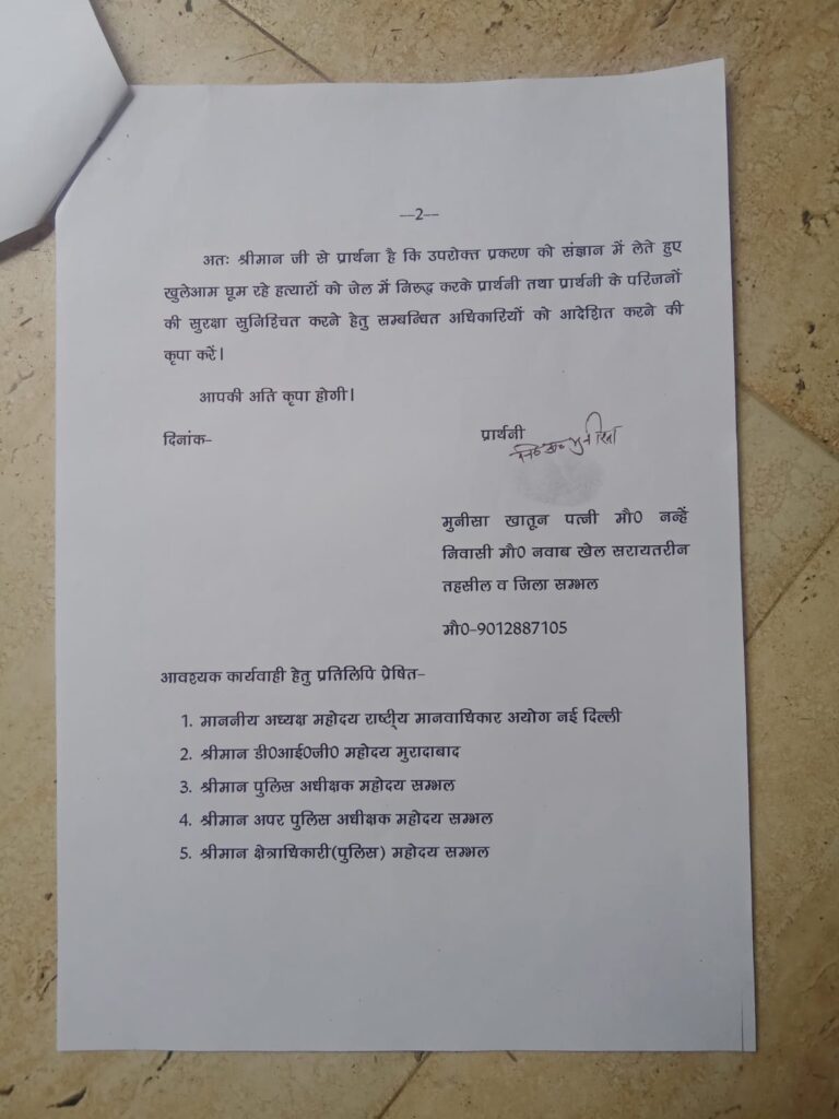 पुलिस द्वारा हत्यारों के खिलाफ कार्यवाही नही किये जाने की व खुलेआम घूमने का लगाया आरोप