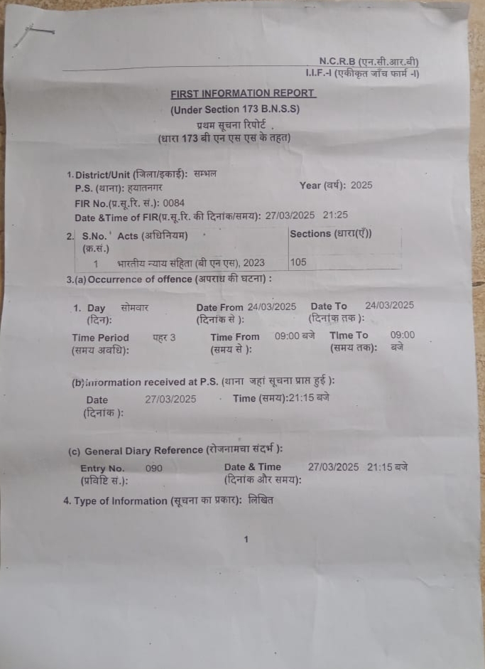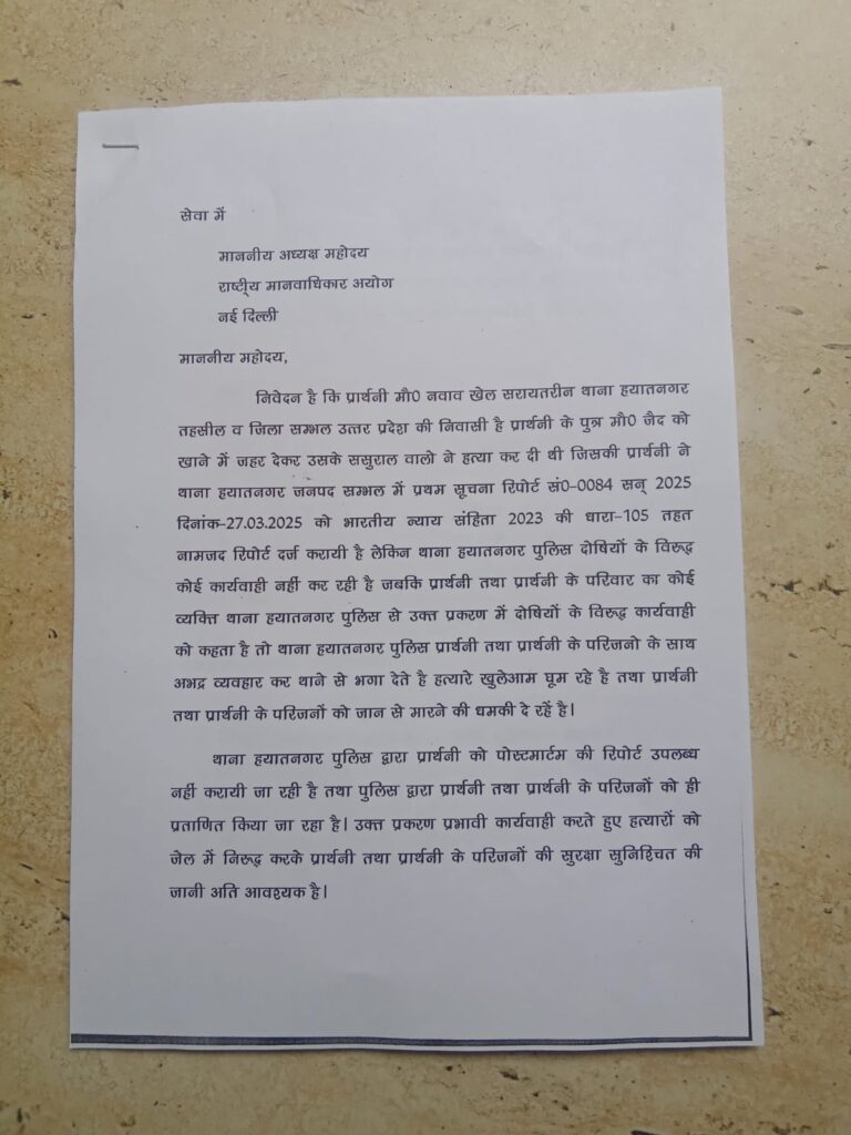 आरोप लगाते हुए मानवाधिकार आयोग से शिकायत की है।हयात नगर थाना प्रभारी ने जानकारी देते हुए बताया आरोपियों की गिरफ्तार जल्द से जल्द की जाएगी पीड़ित