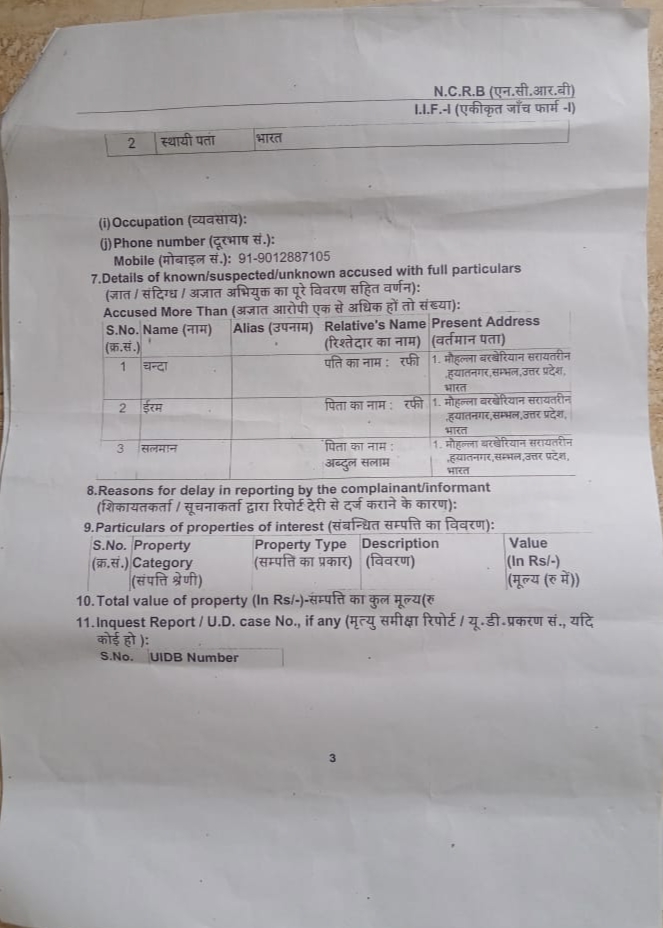 दूध में जहर दे दिया था,जिस कारण उसको सम्भल जिला अस्पताल से मुरादाबाद रेफर कर दिया गया था, जहा उसकी मृत्यु हो गयी थी,हत्या का आरोप मृतक के