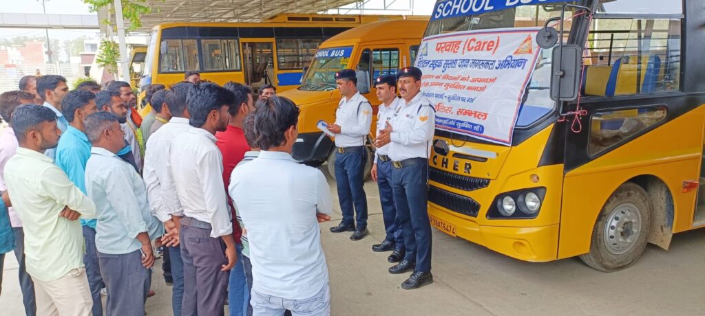 कोतवाली क्षेत्र में मुख्य आरक्षी सोनू अहलावत,मुख्य आरक्षी विशांत चौधरी एवं मुख्य आरक्षी धर्मेंद्र ने स्कूली बच्चों को ले जाने वाली बसों के चालक एवं परिचालकों को यातायात नियमों के बारे में अवगत कराया गया है,कि स्कूली बच्चों की सुरक्षा के लिए आप सब जिम्मेदार हैं चलती बस में ना तो बच्चों को उतारे और ना बच्चों को