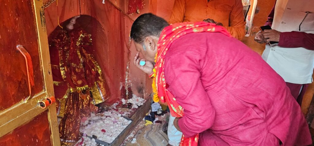 उन्होंने कार्यकर्ताओं का आह्वान किया कि वे सभी लोग खुद मेले की व्यवस्था संभालने का कार्य करें ताकि श्रद्धालुओं को कोई दिक्कत नहीं होने पाये। उसके बाद उन्होंने मां के मंदिर में माता के पैर छूकर आशीर्वाद
