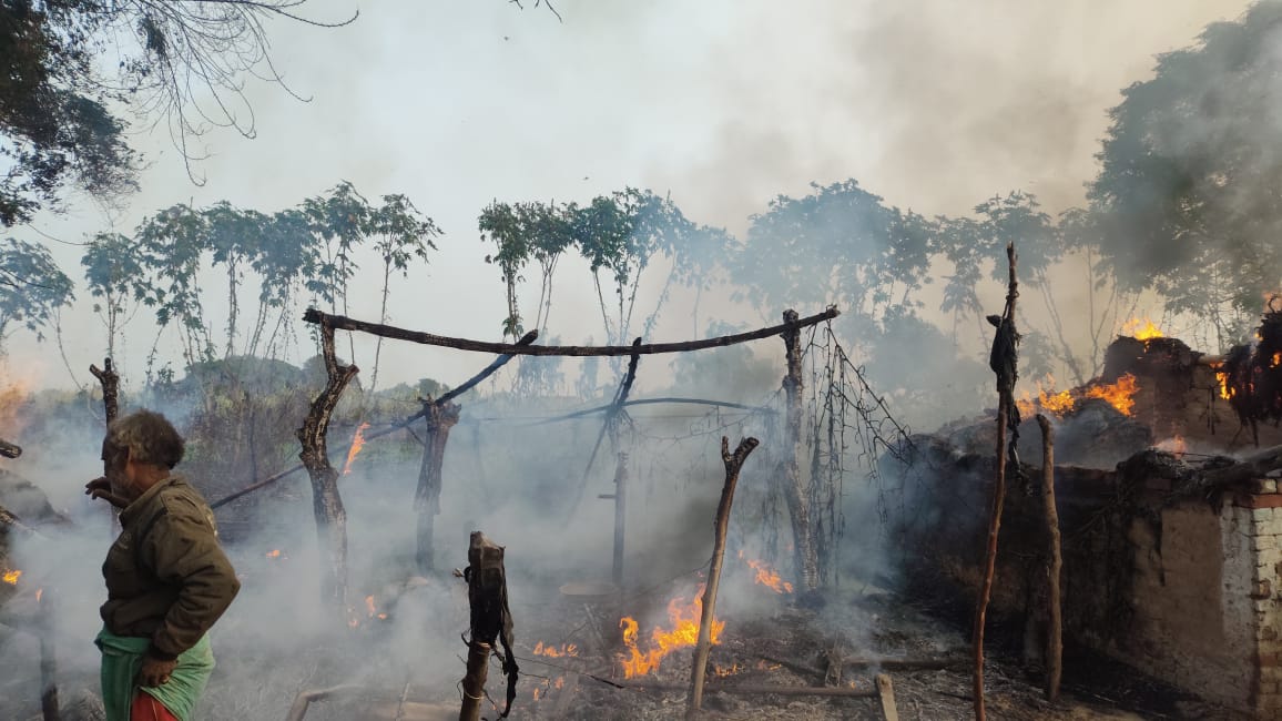 पुलिस ने ग्रामीणों की मदद से बमुश्किल आग पर पाया काबू