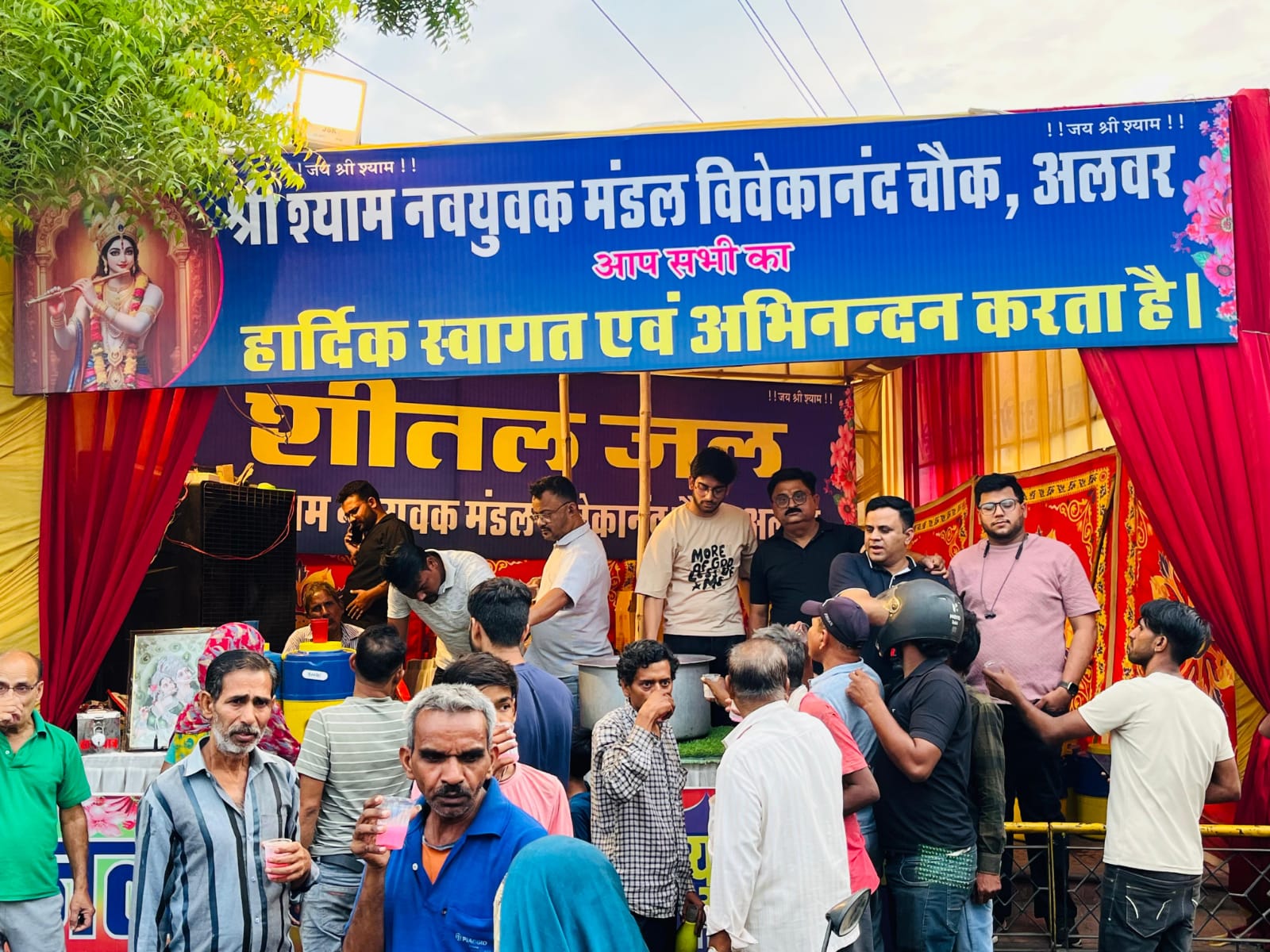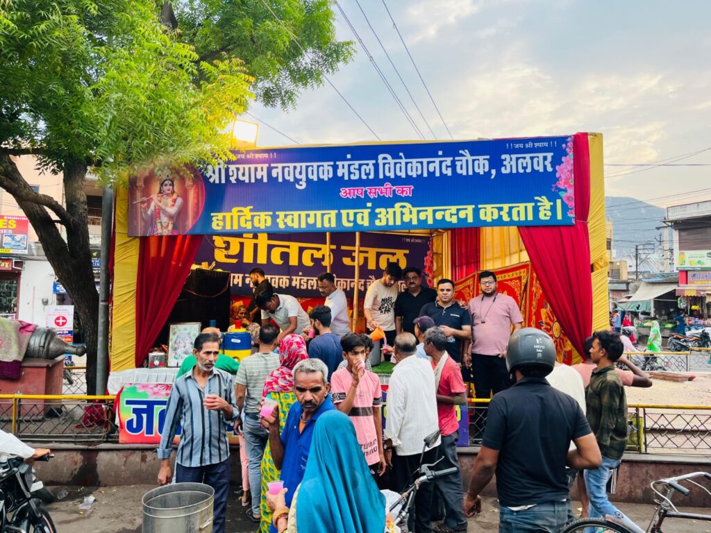 अलवर। 8 मई 2025, श्री श्याम नवयुवक मण्डल की ओर से विवेकानंद चौक पर निरन्तर शीतल जल सेवा जारी है, वही मण्डल अध्यक्ष श्री बॉबी नरुला ने बताया कि भीषण गर्मी को देखते हुए जहां आमजन को पानी के लिए इधर उधर भटकना पड़ रहा है वही श्री श्याम